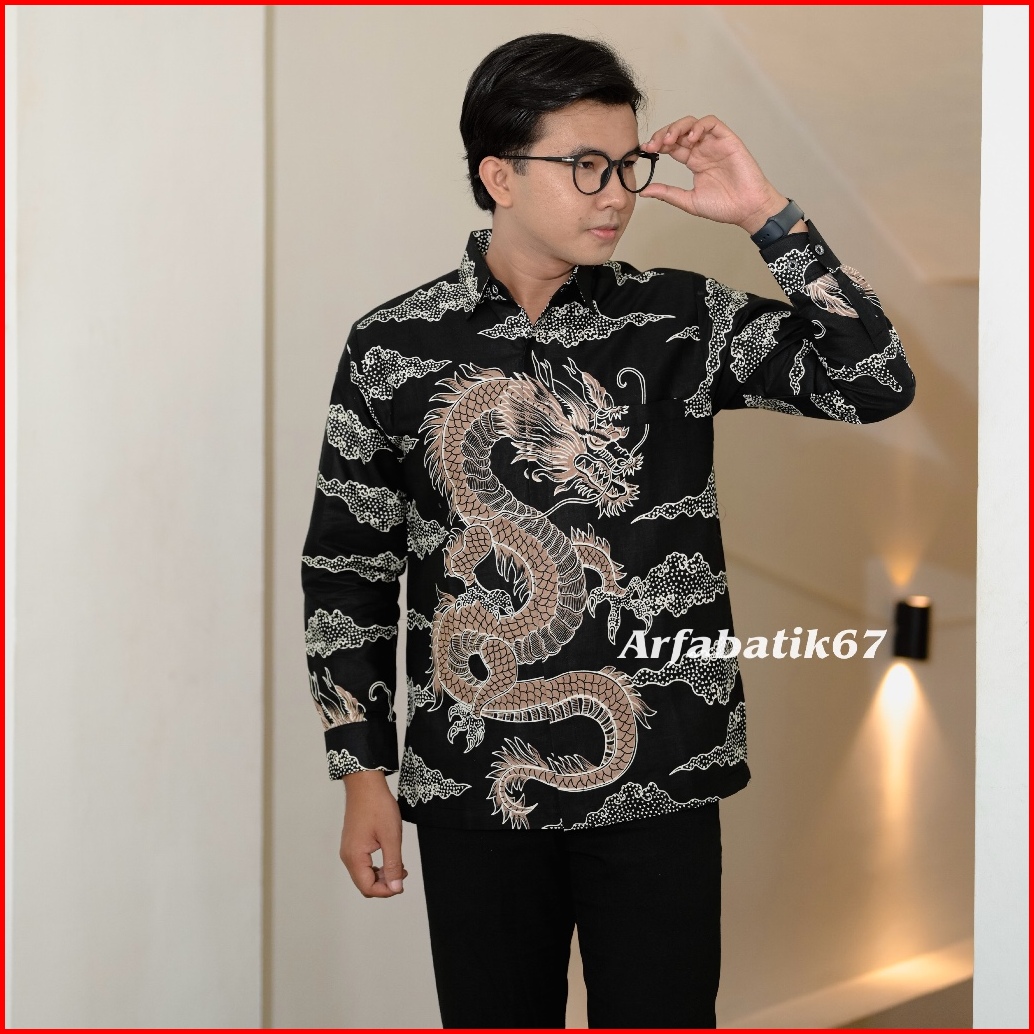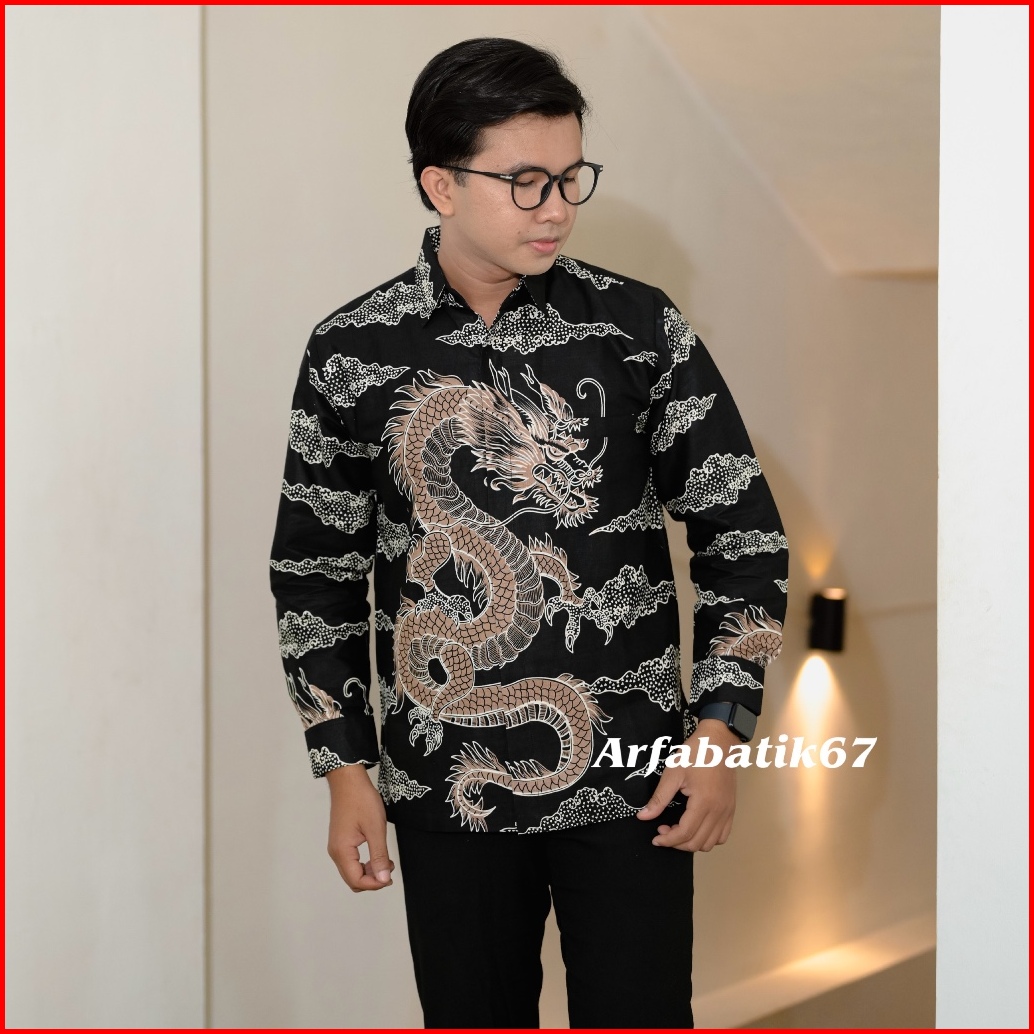 Naga Mocca Hitam Kemeja Batik Pria Premium Lapis Furing Hero Ready Seragaman By Arfabatik67