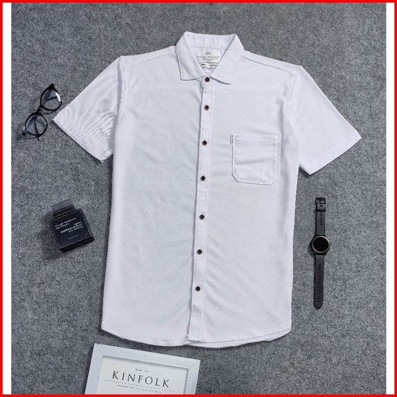 Detak Original Kemeja Polos Pria Lengan Pendek Lacos Pique Premium Slim-fit Kasual Putih