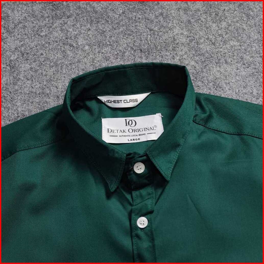 Detak Original Kemeja Polos Twill Premium Pria Lengan Panjang Hijau Botol Casual Slimfit