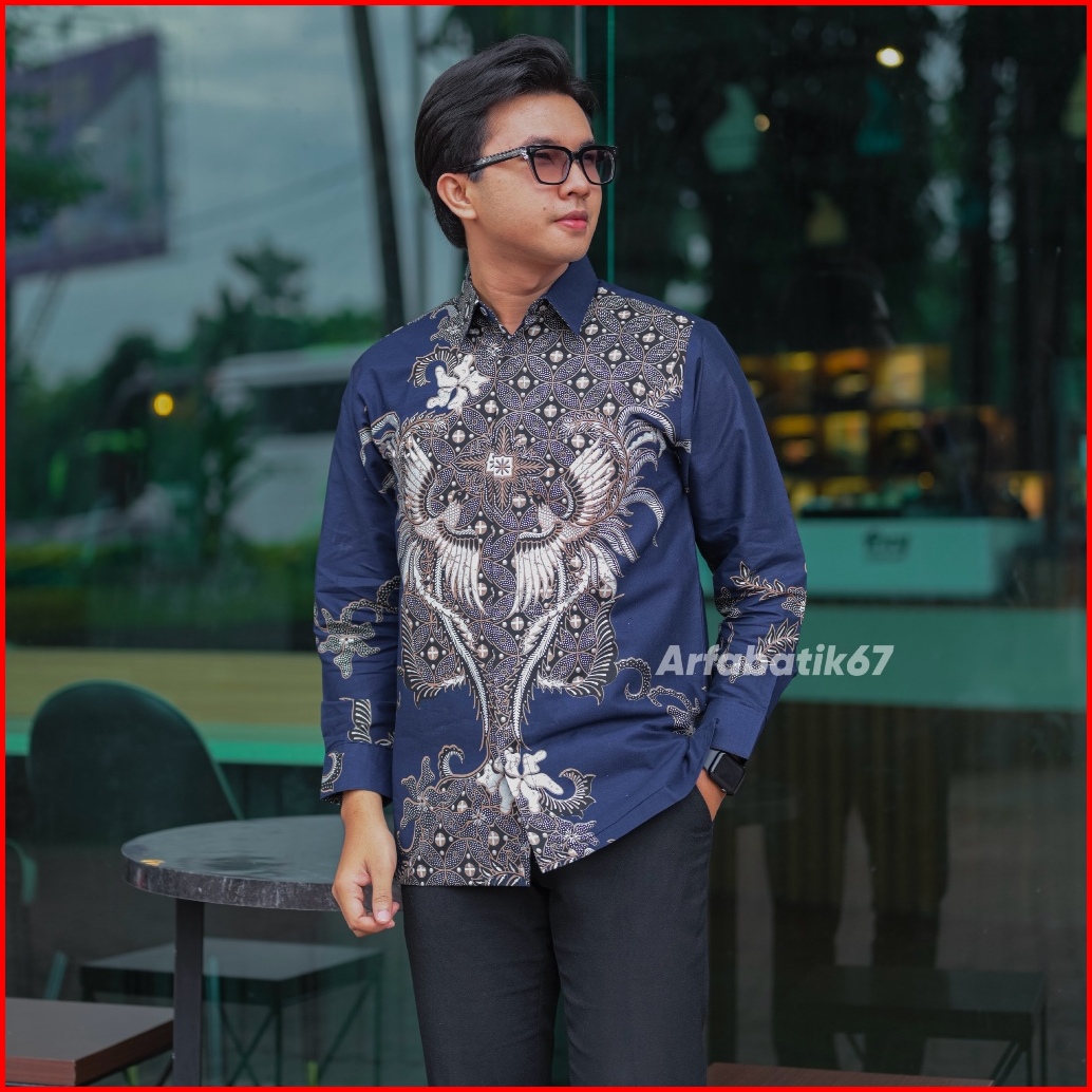 Wiratama Biru Dongker Kemeja Batik Pria Premium Lapis Furing Hero Ready Seragaman By Arfabatik67