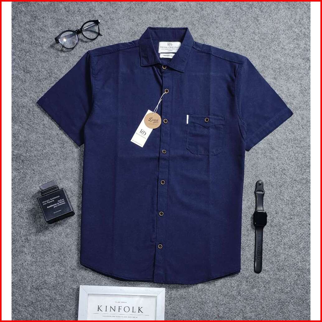 Detak Original Kemeja Polos Pria Lengan Pendek Katun Cigaret Biru Navy