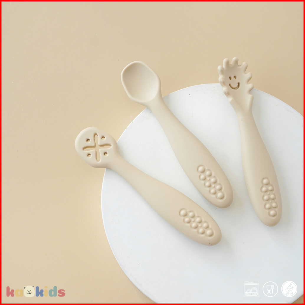 Kaokids Silicone Training Baby Feeding Set 3 Set Sendok Makan Mpasi Spoon Dipping Spoon Fork