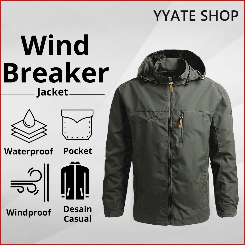 Jaket Pria Waterproof Hoodie Keren Tersedia 4 Warna Windproof Aoutdoor Wear