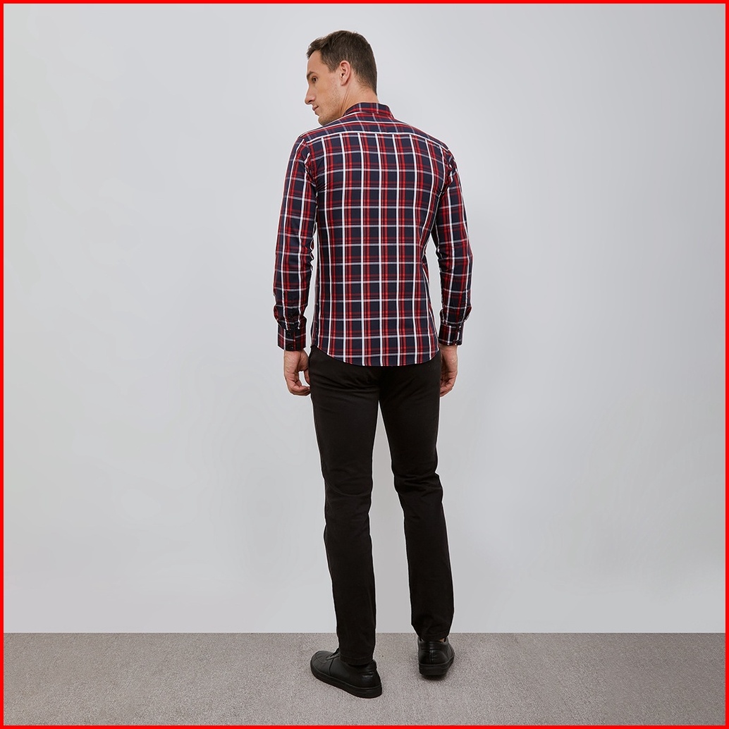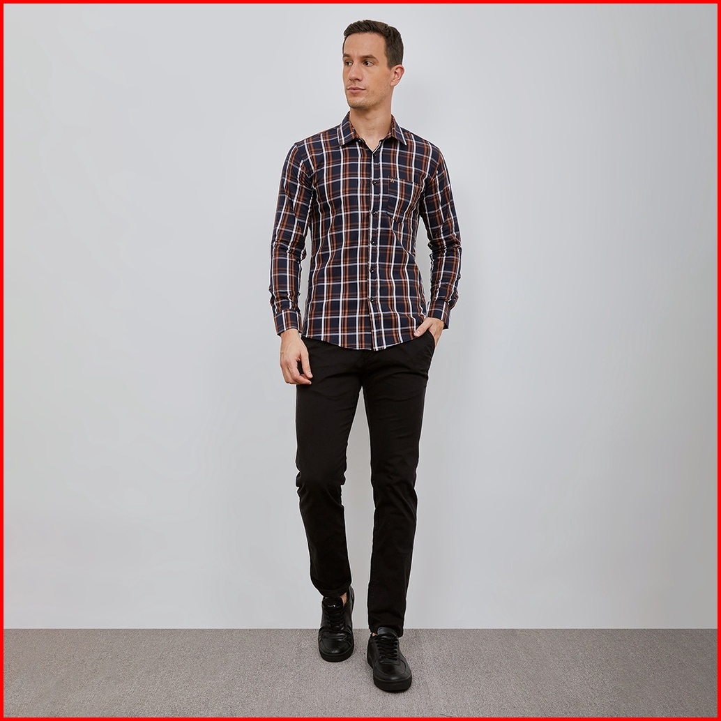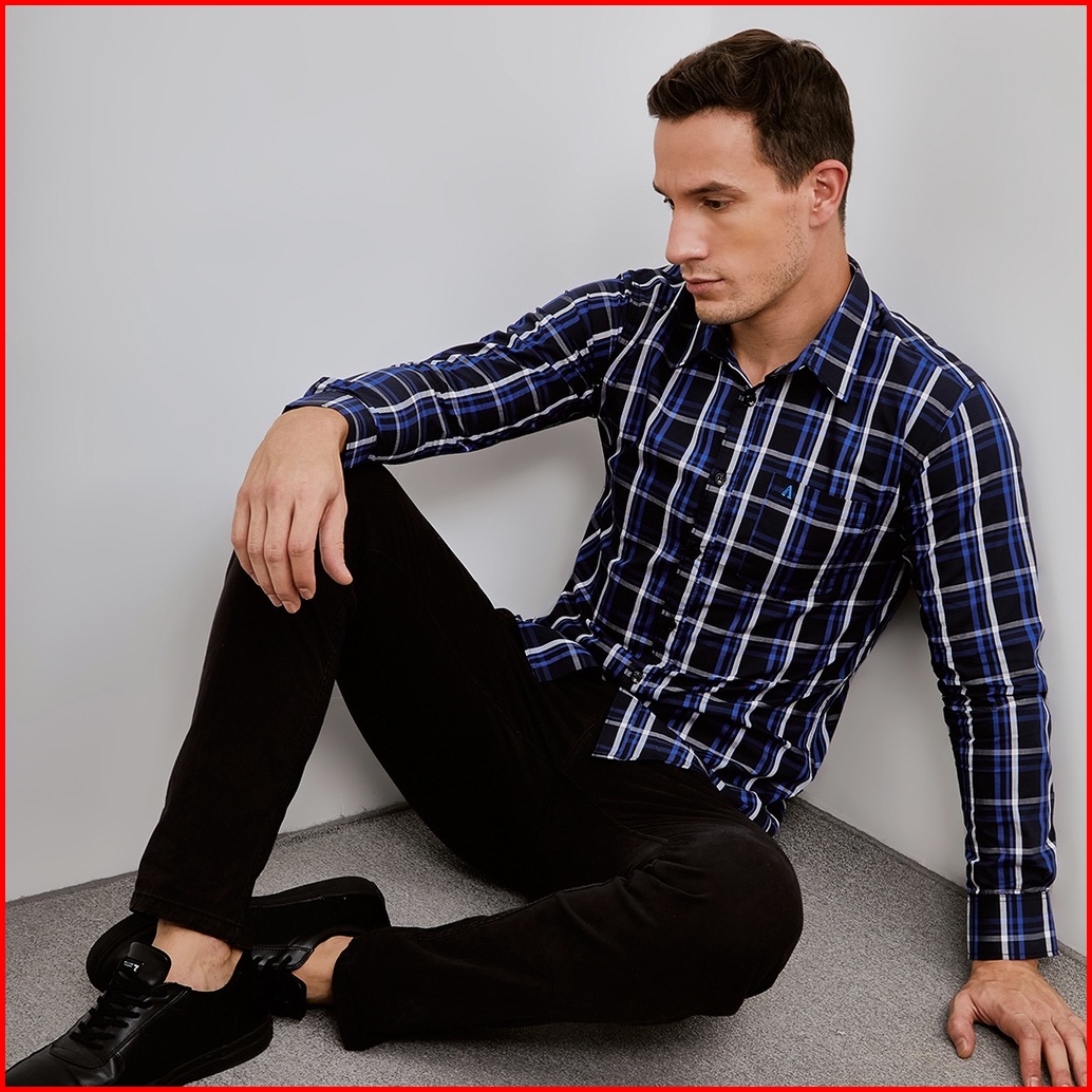 Almano Slim Fit Checked Long Sleeve Shirt Kemeja Motif Kotak Lengan Panjang Katun