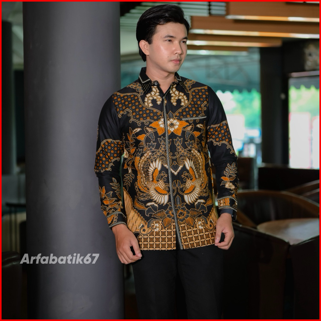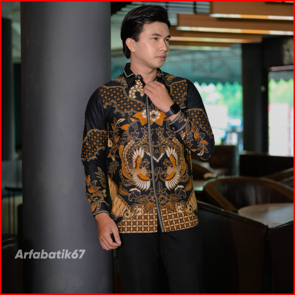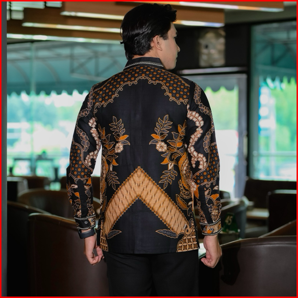 Tedjo Hitam Smock Kemeja Batik Smock Bordir Pria Katun Prima Premium Lengan Panjang Lapis Full Furing Trikot Wafle Full