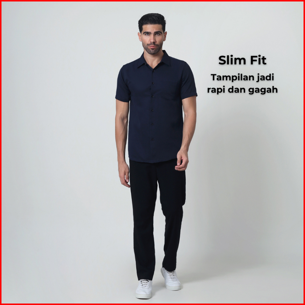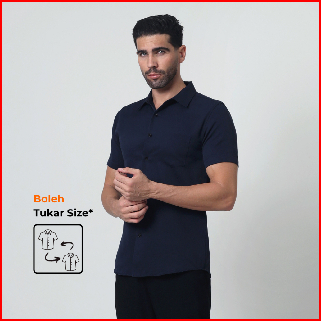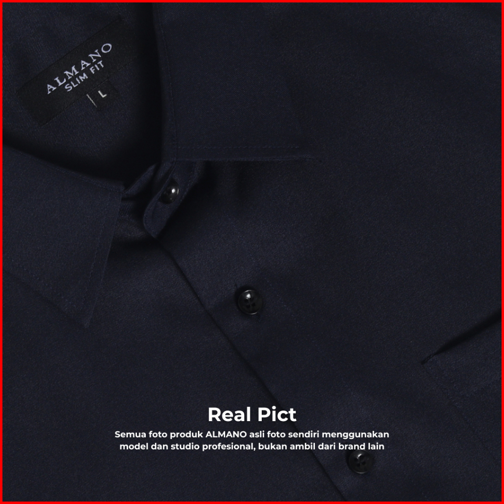 Almano Oxford Shirt Ss Navy Kemeja Pria Slim Fit Polos Pendek Biru Dongker