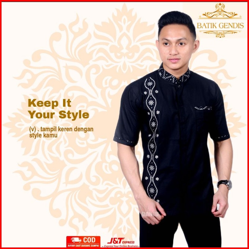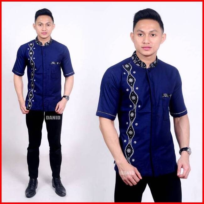 Baju Pria Koko Lengan Pendek Kombinasi Bordir Db113