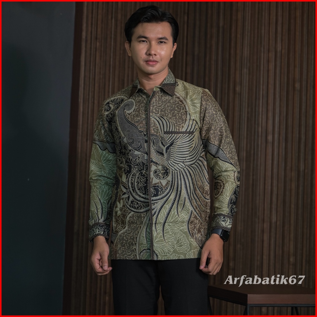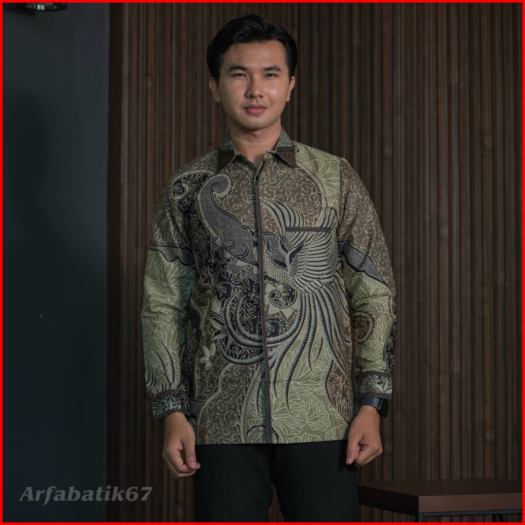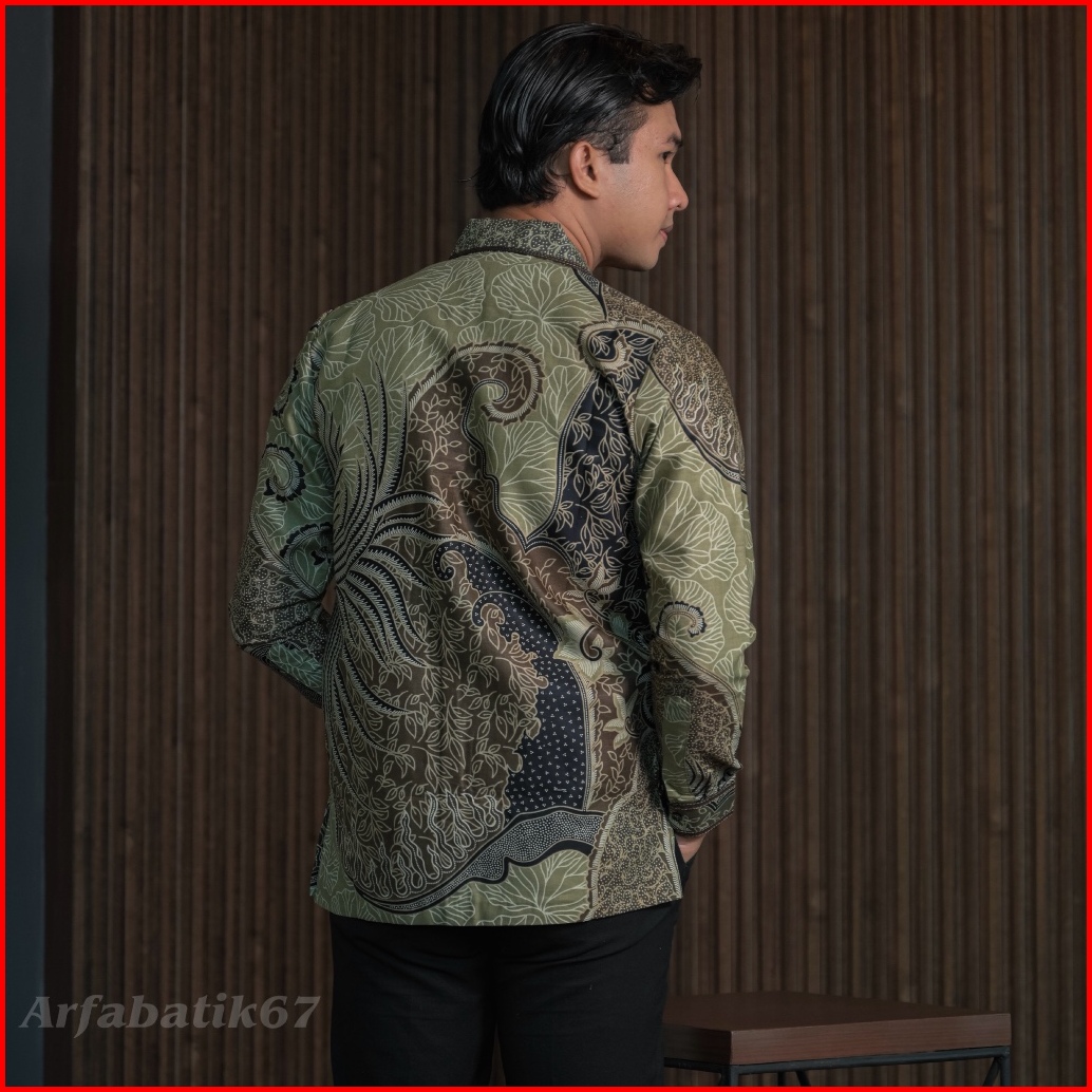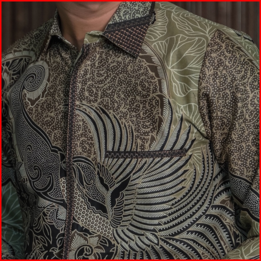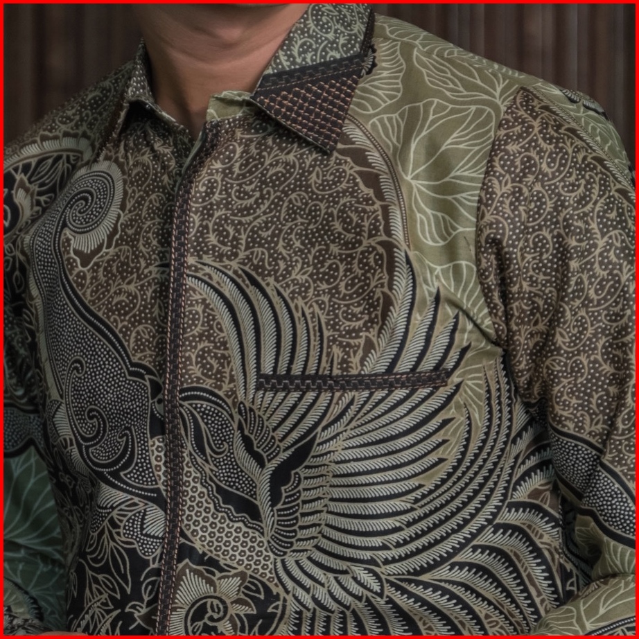 Mandala Olive Kemeja Batik Smock Bordir Pria Katun Prima Premium Lengan Panjang Lapis Full Furing Trikot Wafle Full Samp