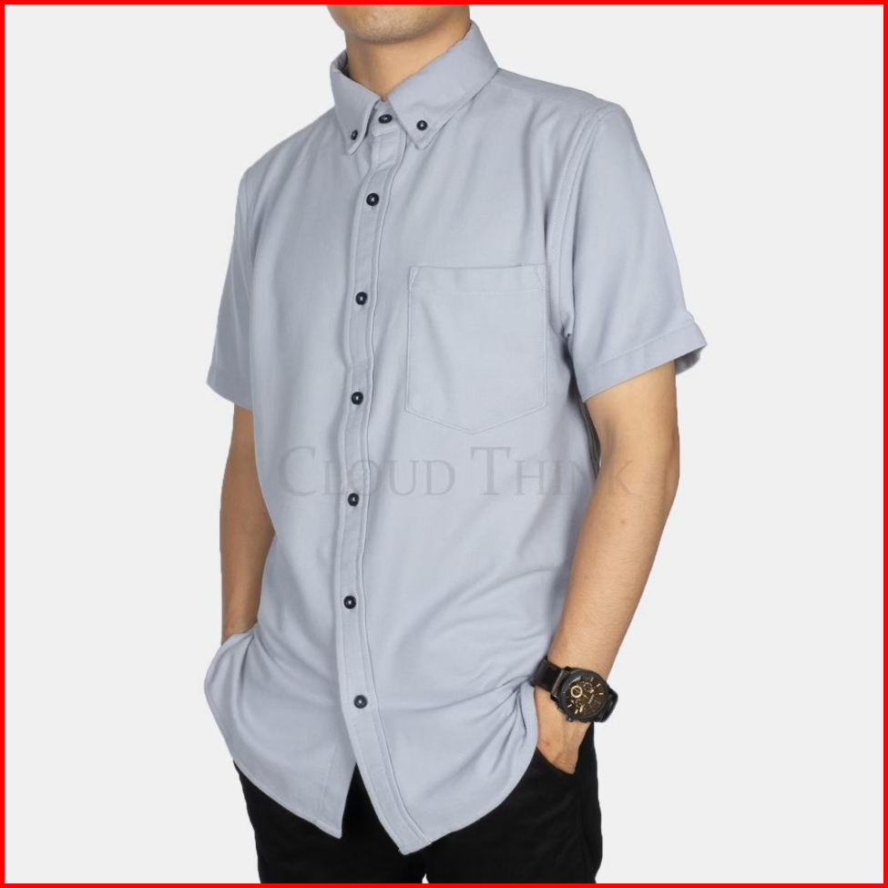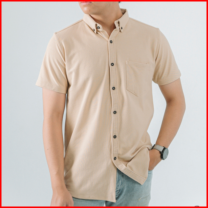 Loku Kemeja Pria Lengan Pendek Cream Bahan Katun Pique Hexagon 24s