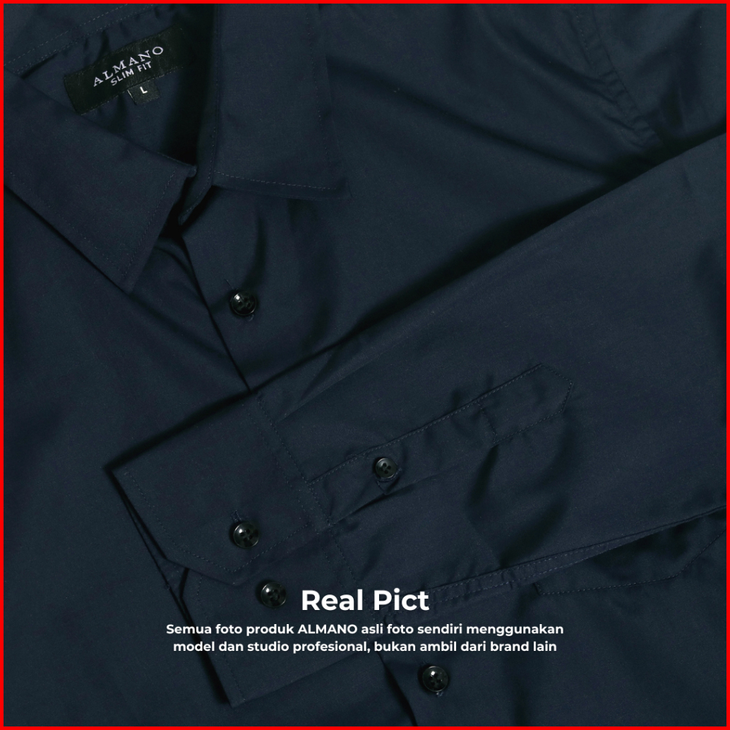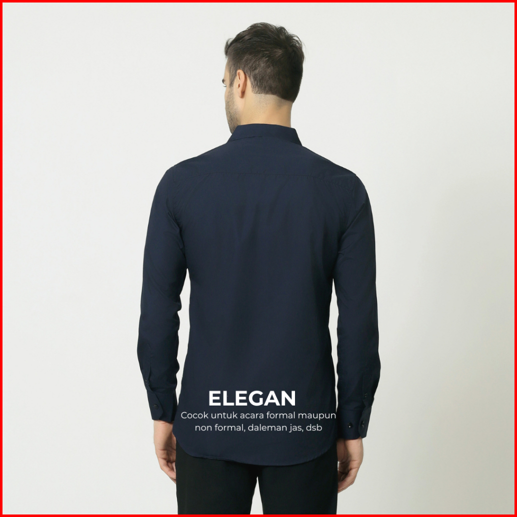 Almano Elegant Shirt Ls Navy Kemeja Pria Slim Fit Panjang Polos Biru Dongker