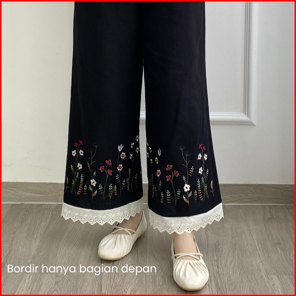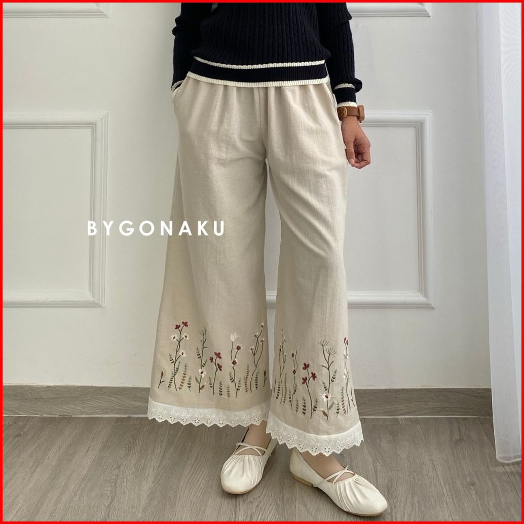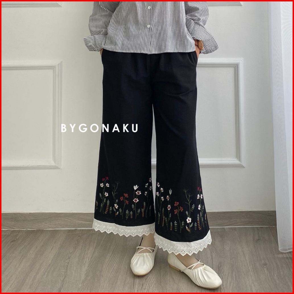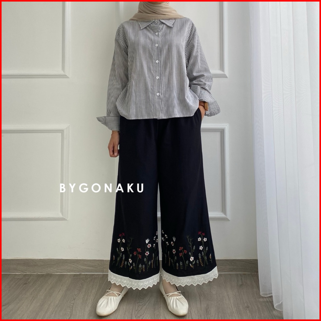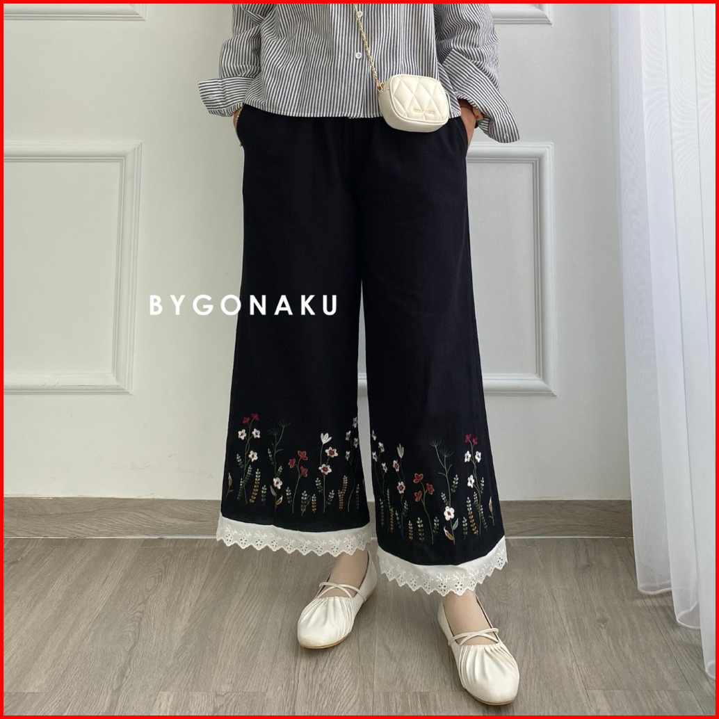 Gonaku Ciro Cullottes Embroidery Linen Highwaist Pants Kulot Linen Brodir Murah Linen Premium Kulot Pinggang Karet Cullo