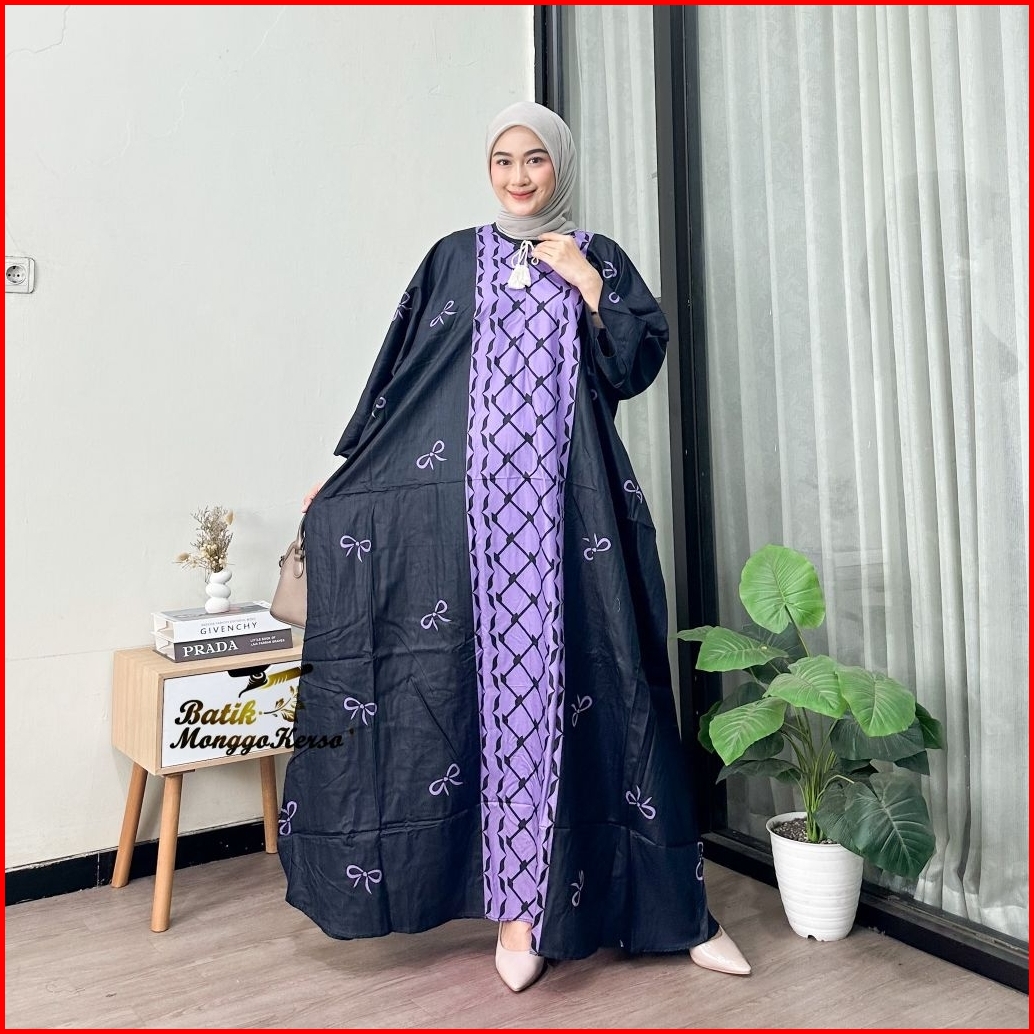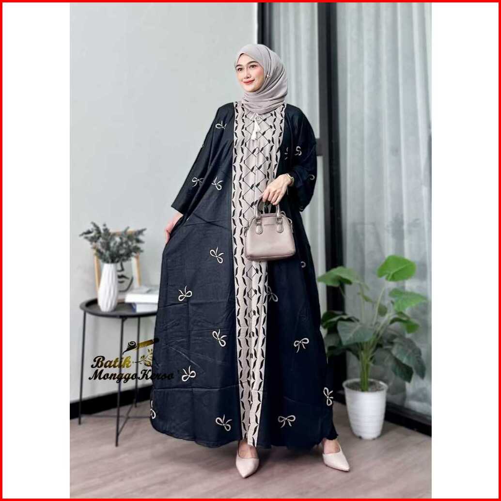 Batik Monggo Kerso Elea Kaftan Abaya Series Limited Edition Motif Pita - Kain Rayon Premium
