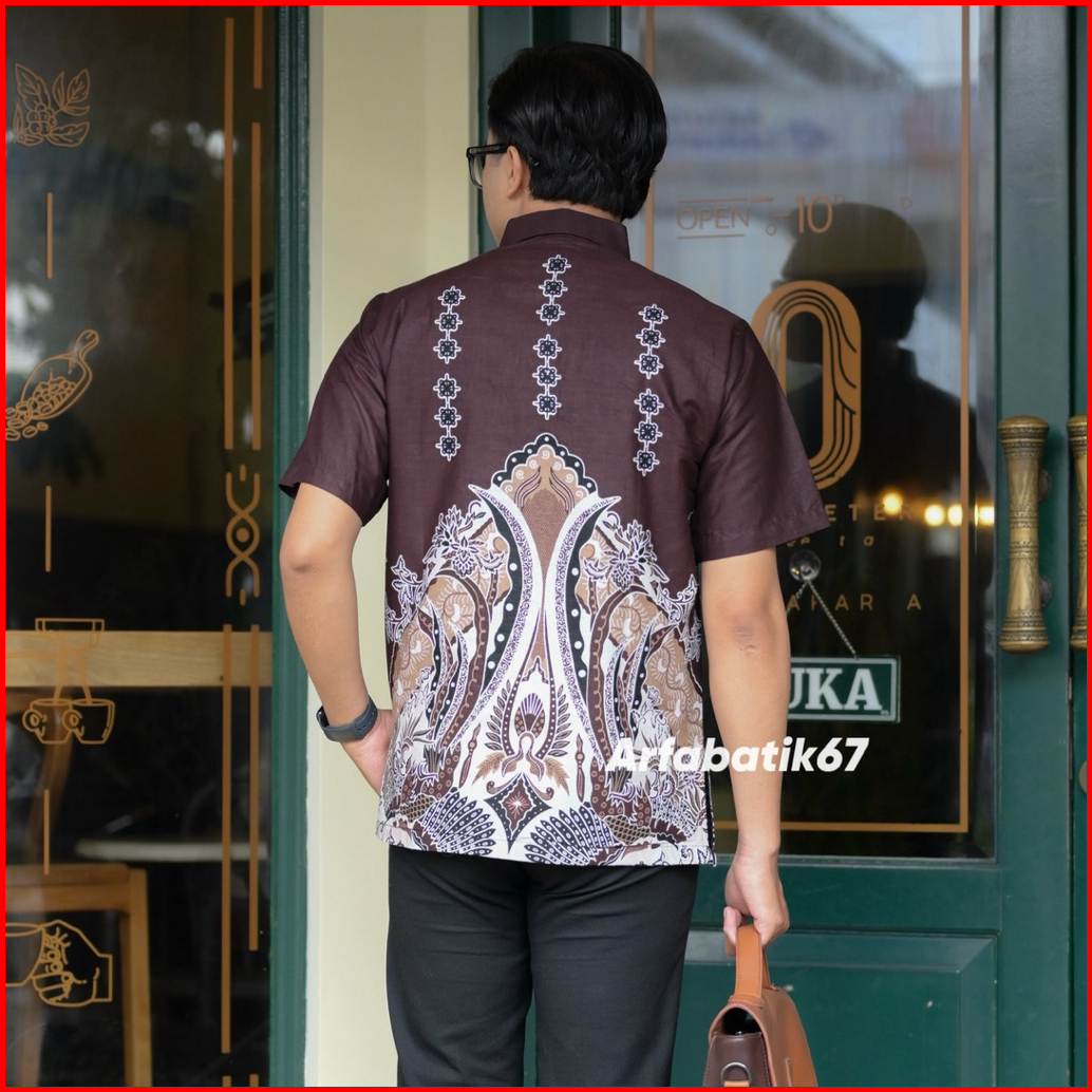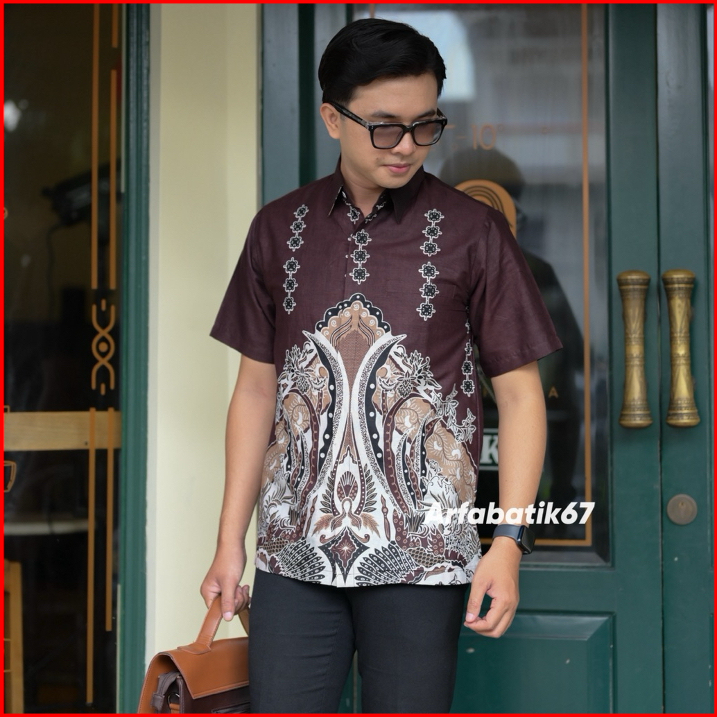 Gunungan Mahogany Baju Batik Pria Tangan Pendek Katun Prima Premium Lapis Furing Hero By Arfabatik67