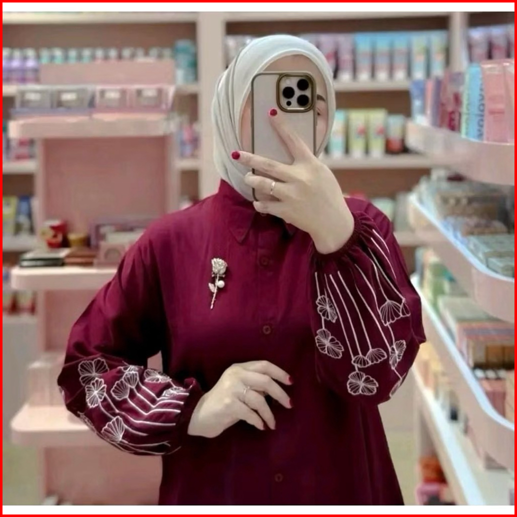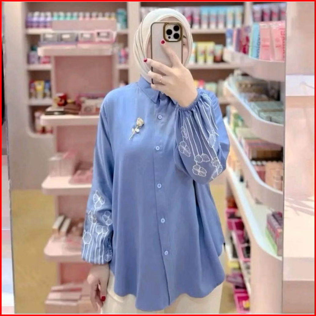 Livia Monic Blouse Bordir Rayon Twill Bunga-bunga Tanpa Bross