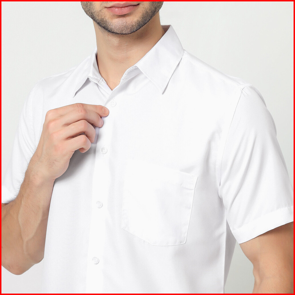 Almano Eston Shirt Ss White Kemeja Pria Slim Fit Polos Pendek Putih