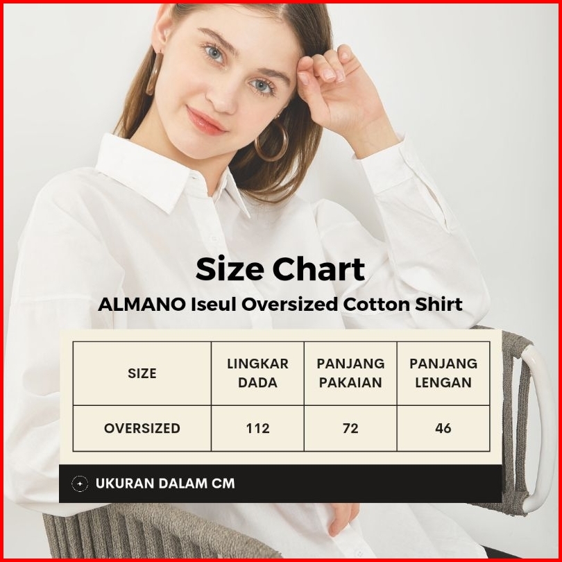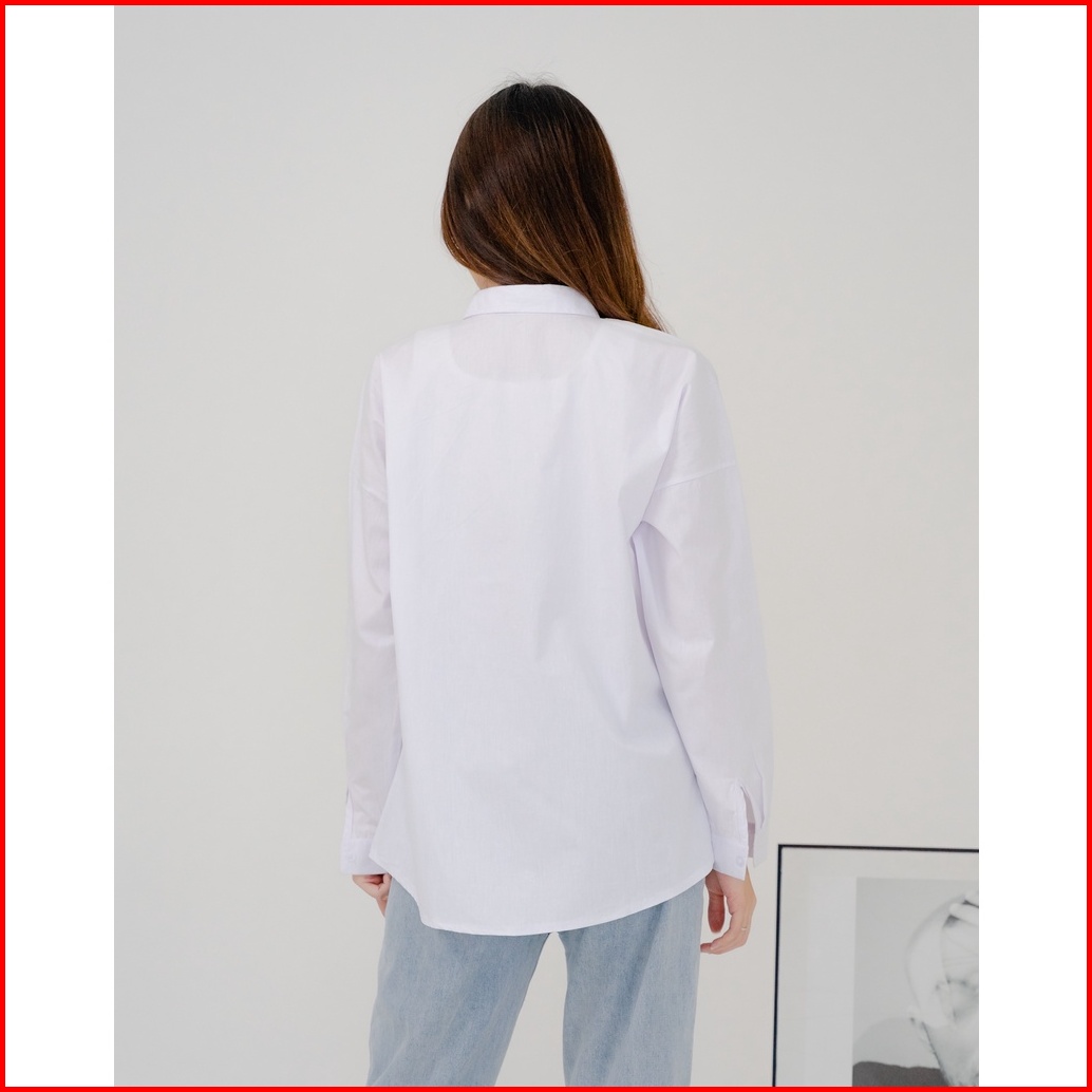 Almano Iseul Oversize Cotton Shirt Long Sleeve Kemeja Korea Kantor Wanita