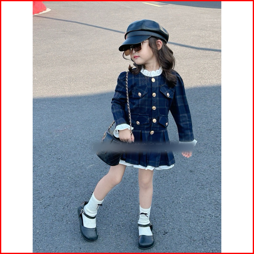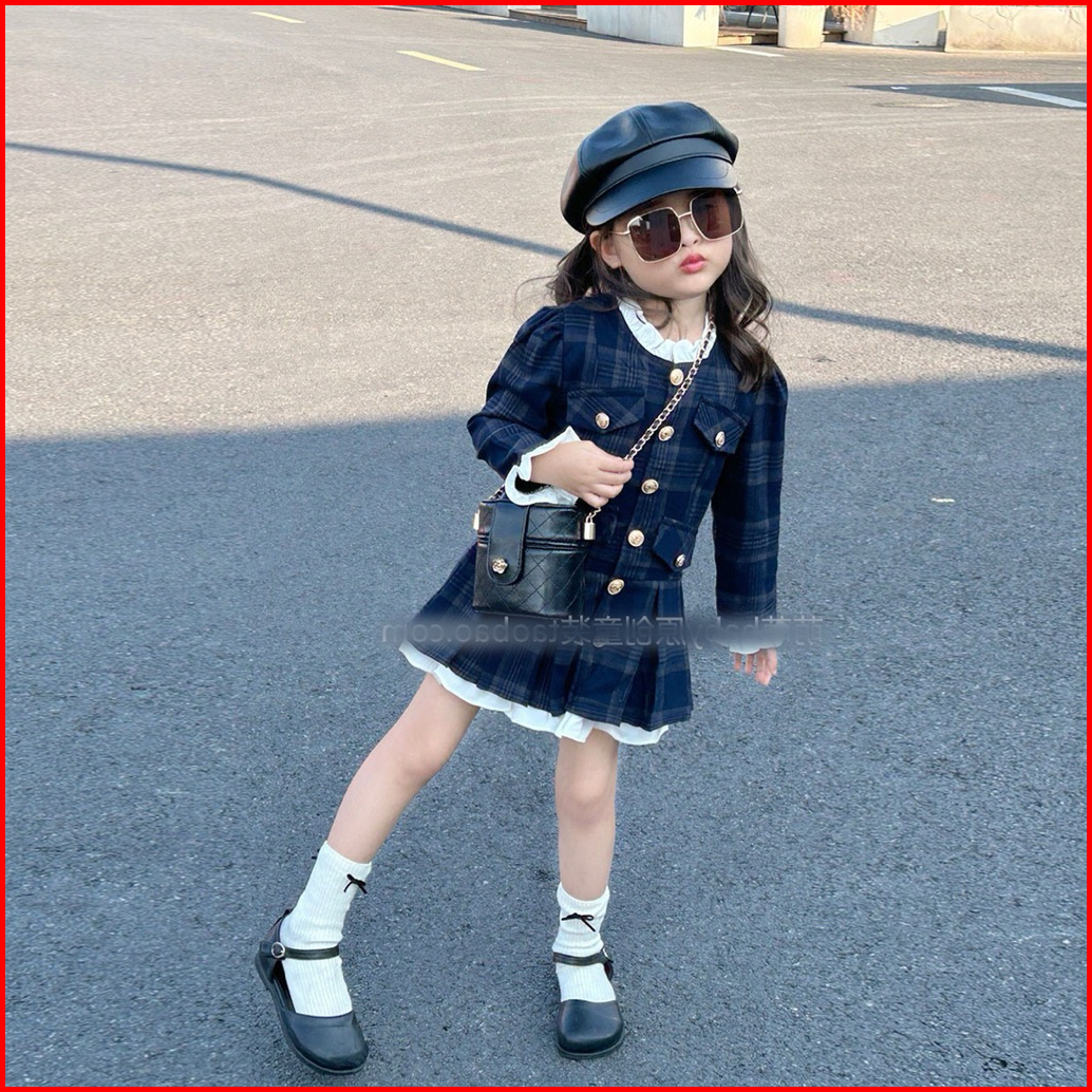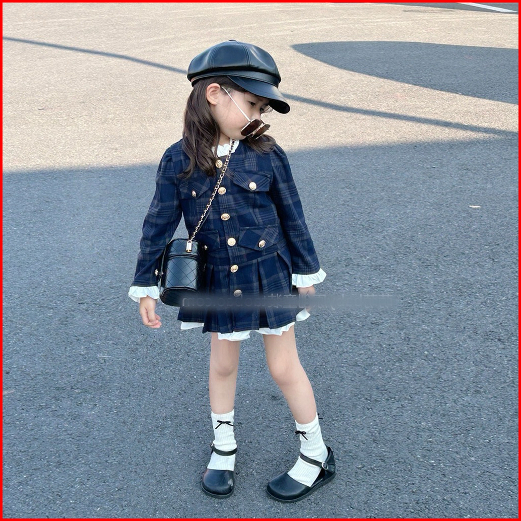 Luxica 3-8 Tahun Dress Gaun Pesta Viral Anak Perempuan Checker Highneck Ala Korea Import Premium