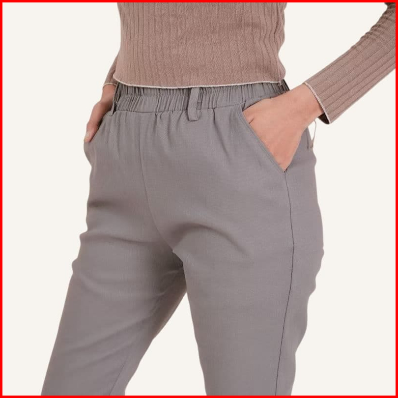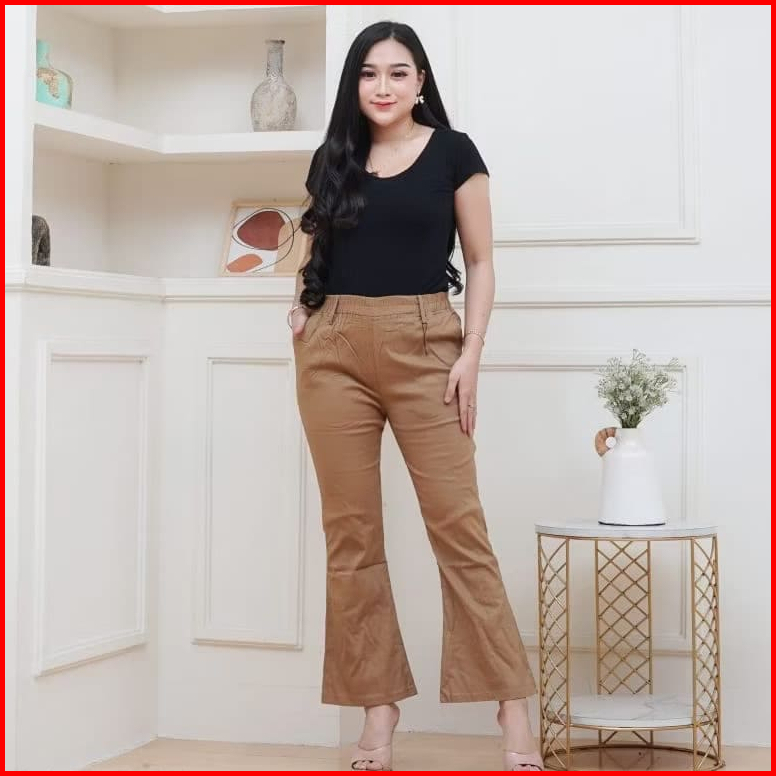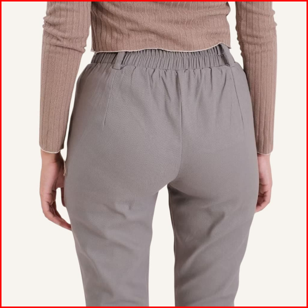 Cutbray Basic Pants Wanita Celana Panjang Wanita Highwaist Katun Twil Combed Stretch Pinggang Karet