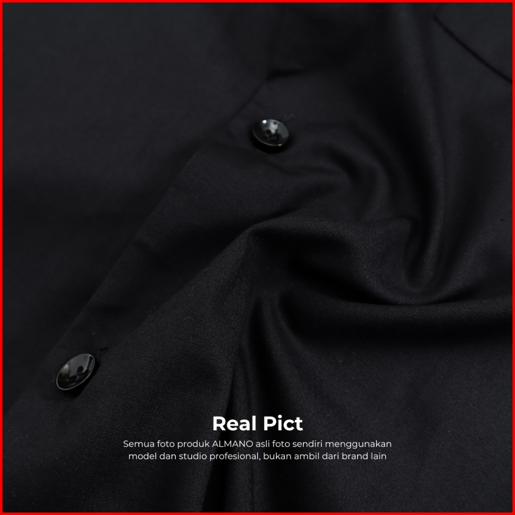 Almano Devin Shirt Ls Black Kemeja Pria Slim Fit Polos Panjang Katun Hitam