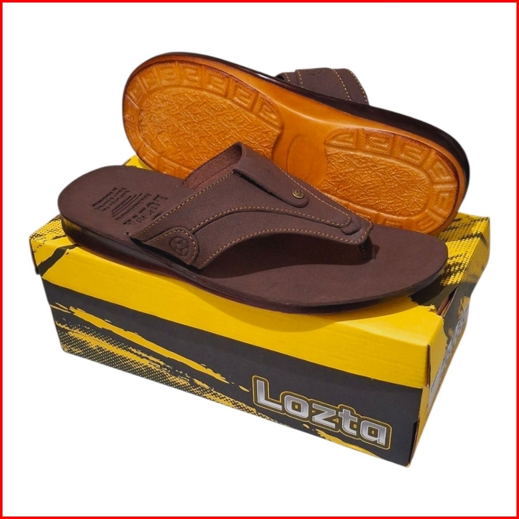 Lozta Indonesia Sandal Kulit Pria Selop Bahan Kulit Sol Karet Lentur Anti Slip