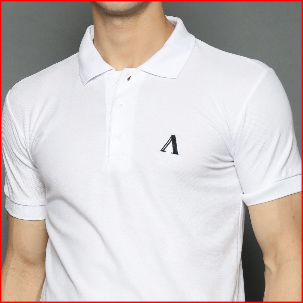 Almano Signature Polo Shirt White Kaos Kerah Pria Slim Fit Putih
