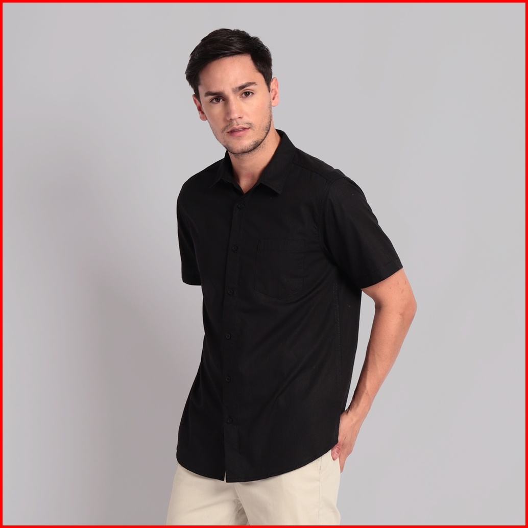 Open Ending Kemeja Pria Basic Katun Poplin Pendek Hitam Psb-001