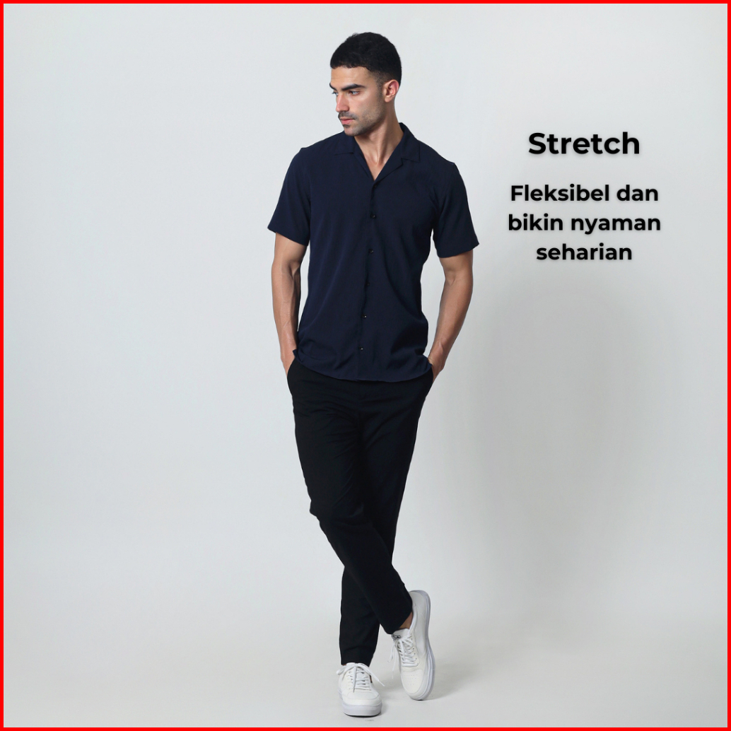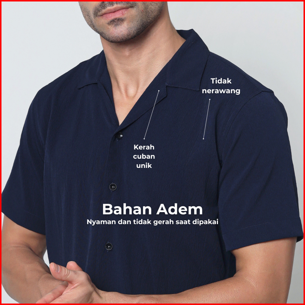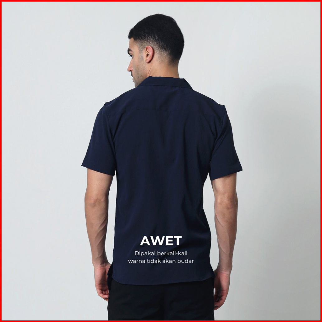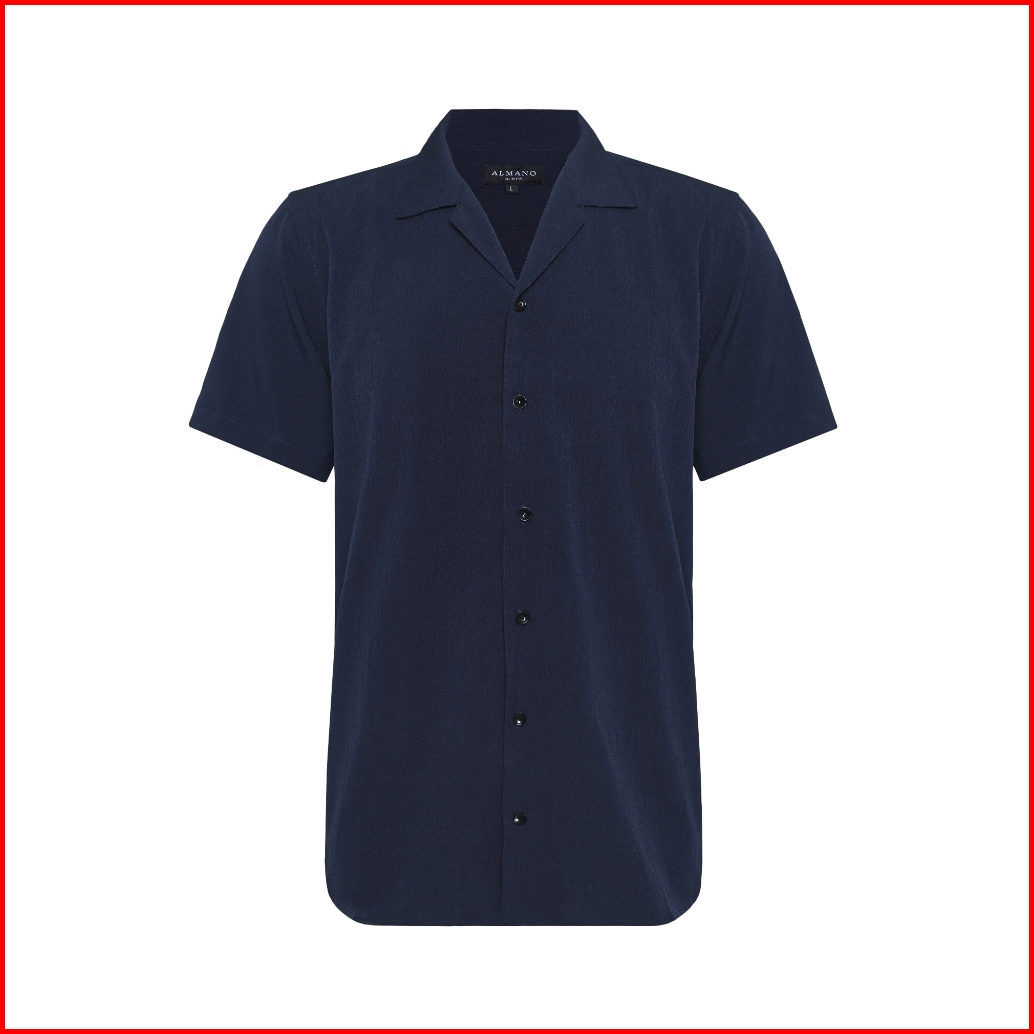 Almano Cuban Shirt Ss Navy Kemeja Kuba Pria Slim Fit Pendek Biru Dongker