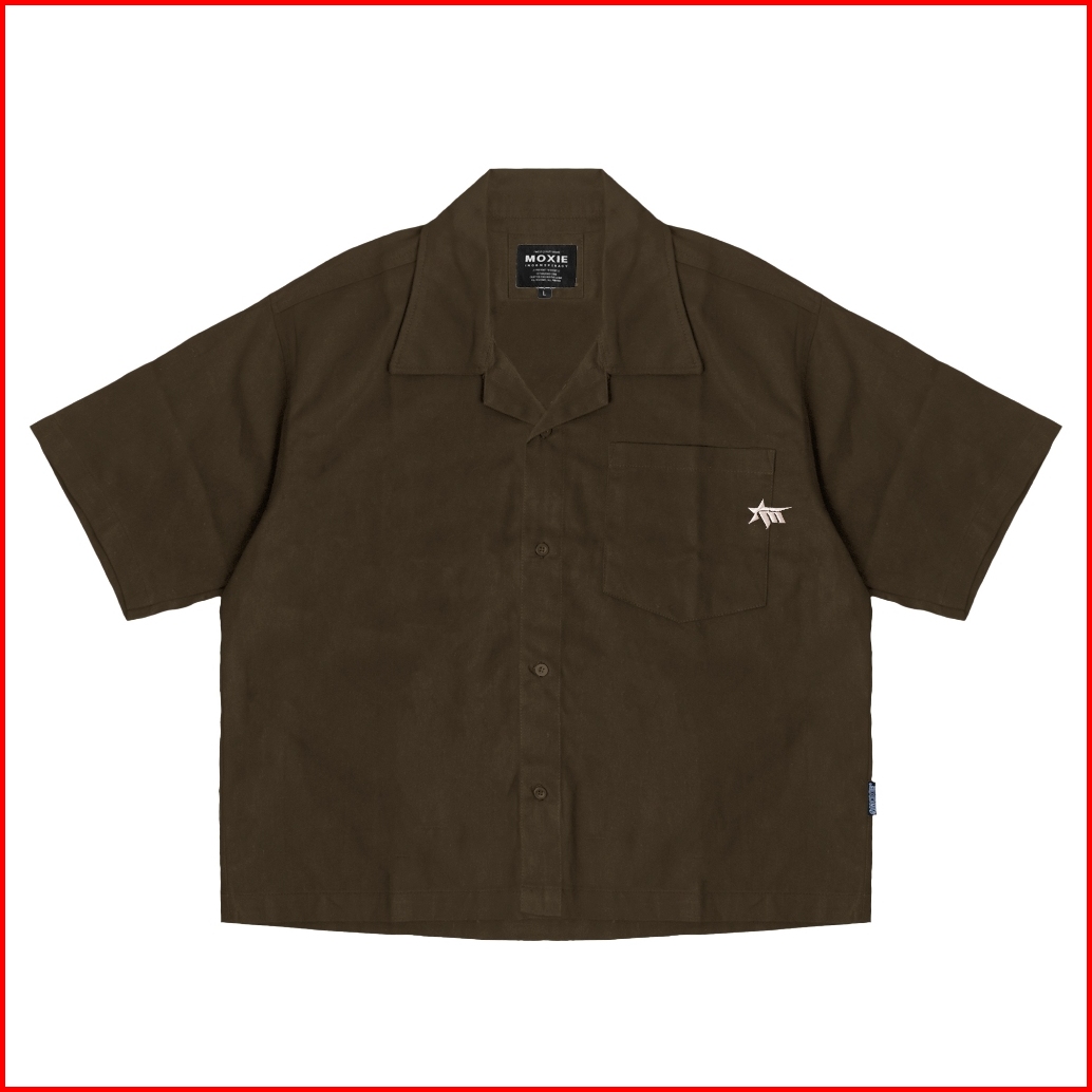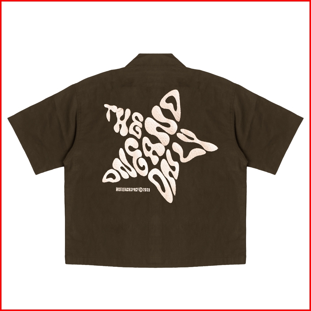 Moxie Dante Embroidery Boxy Shirt - Brown