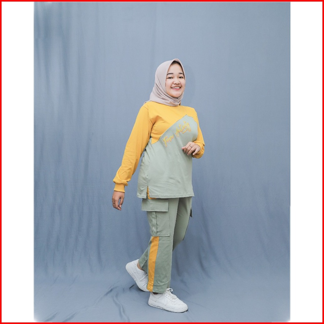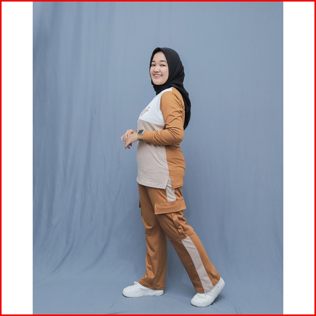 Setelan Olahraga Wanita Baju Olahraga Wanita Muslim Setelan Senam Zumba Sepeda Gowes One Set Cargo