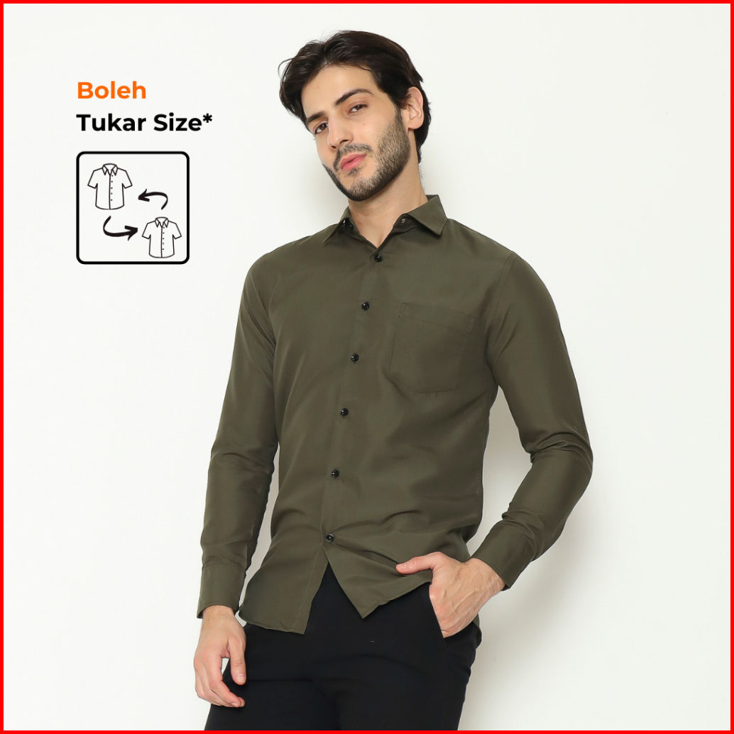 Almano Eston Shirt Ls Olive Kemeja Pria Slim Fit Polos Panjang Hijau Tua