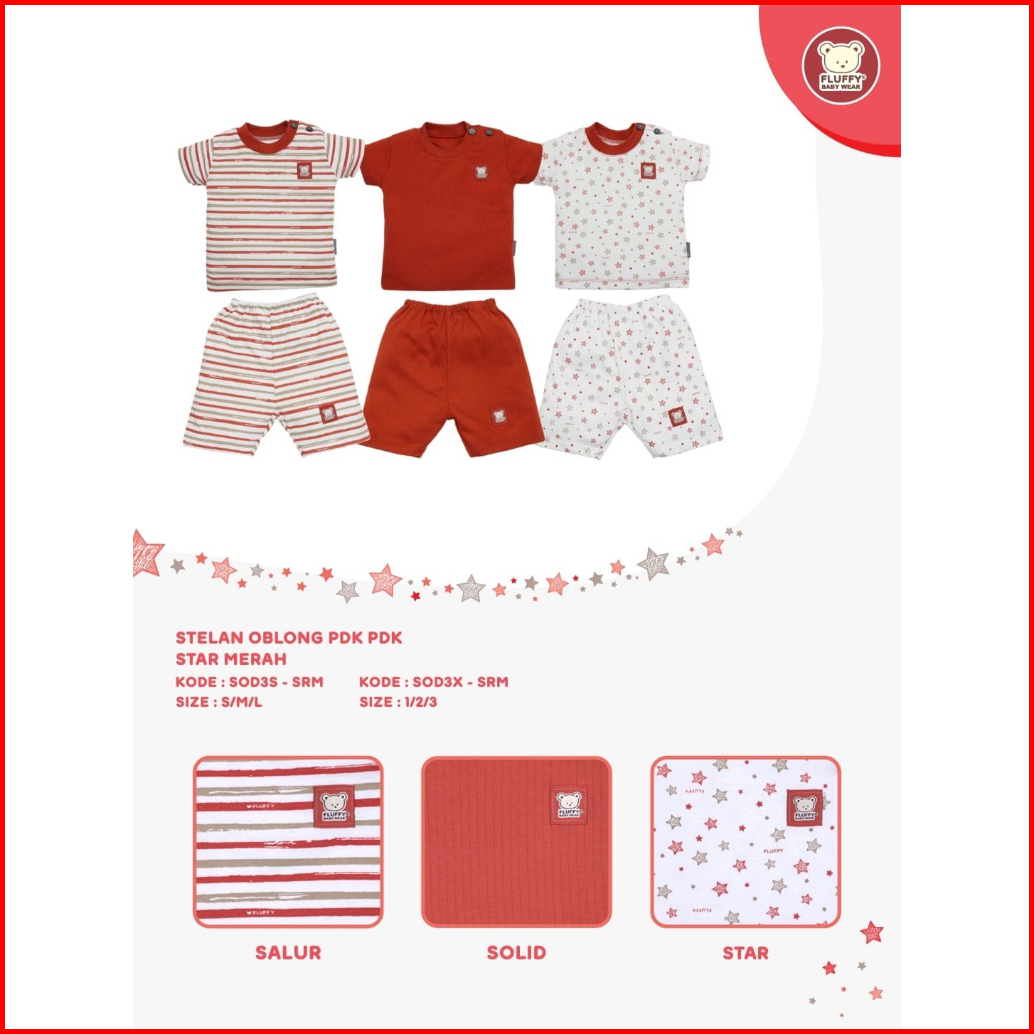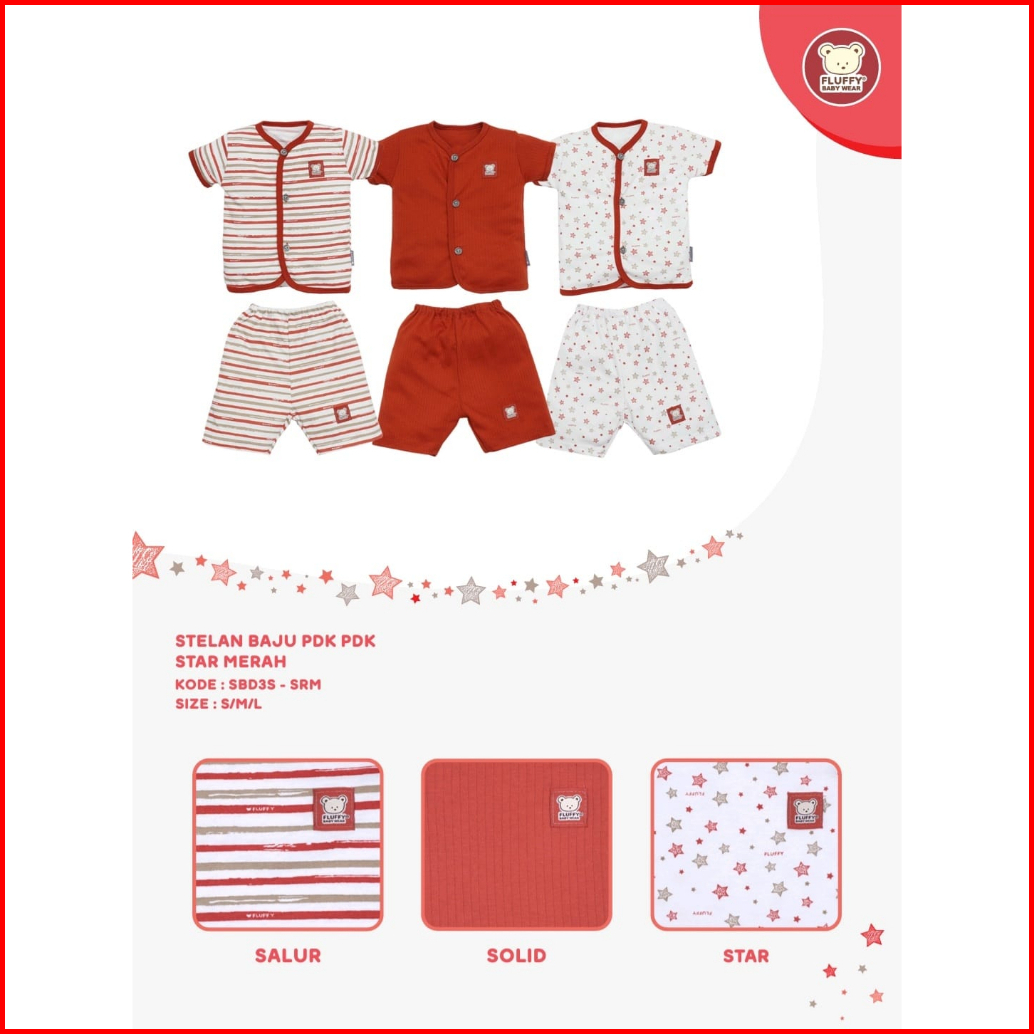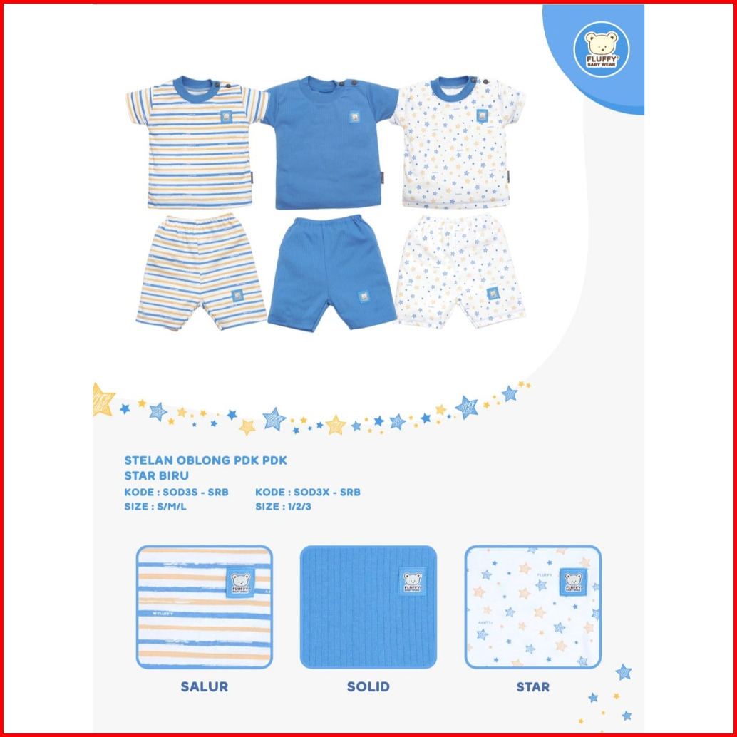 Fluffy 3 Setelan Bayi Baju Pendek Dan Celana Pendek 3 4 Size S M L 1 2 3 Seri Star Fluffy Baby