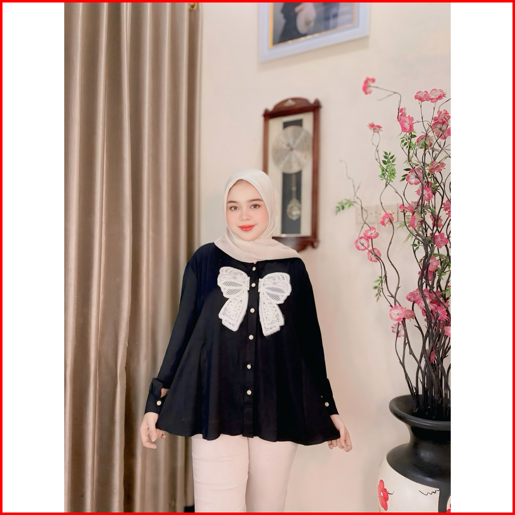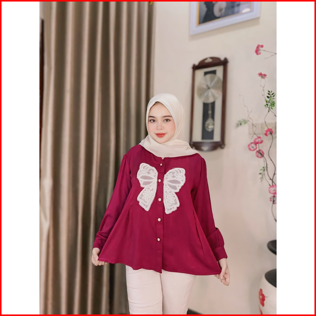 Alma Shirt Kemeja Wanita Kombinasi Burket. Atasan Wanita Bahan Rayon Twill
