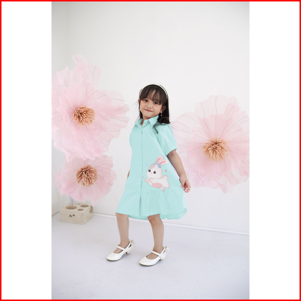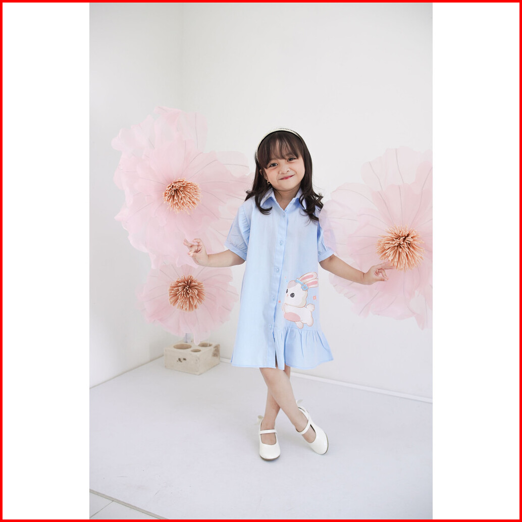 Zahra - Alera Dress Anak Perempuan Biru Motif Kelinci Lucu Baju Casual Anak Cewek Usia 37 Tahun