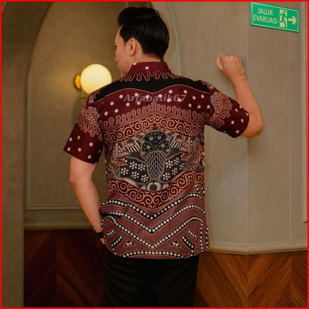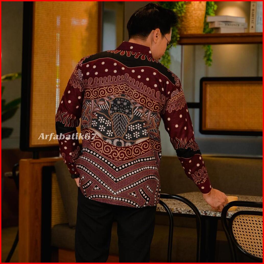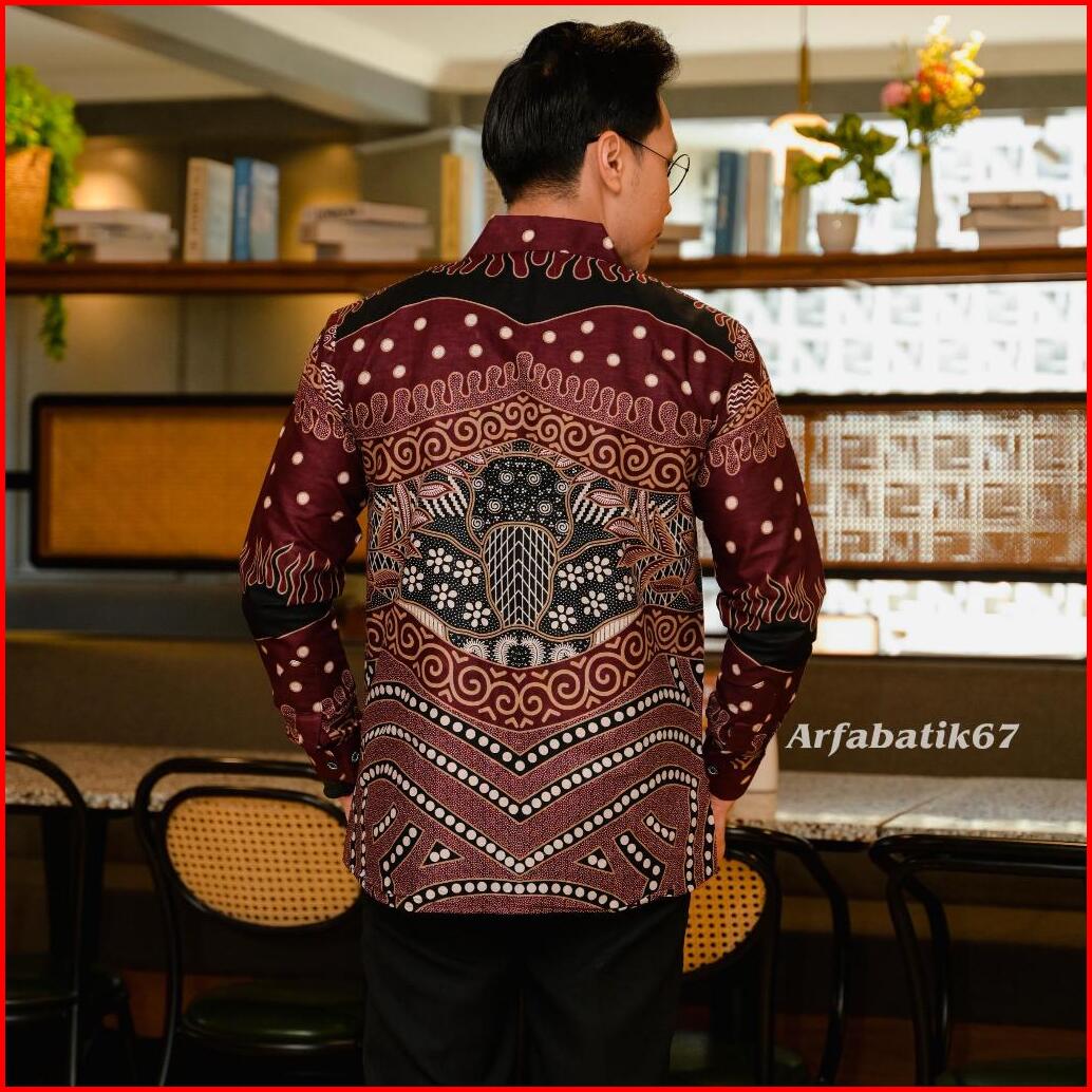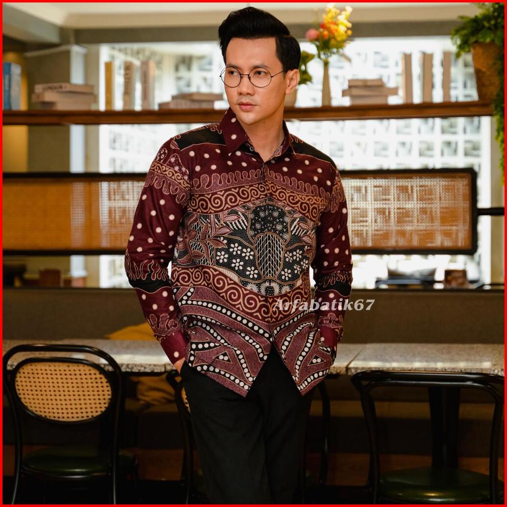 Slimfit Ramayana Burgundy Kemeja Batik Pria Slimfit Lengan Panjang Katun Prima Premium Lapis Furing Hero Ready Seragaman