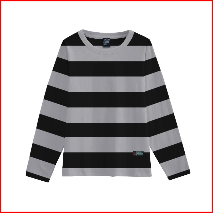Secondly.id Kaos Salur Lengan Panjang Wanita Tshirt Women Stripe Cotton 24s