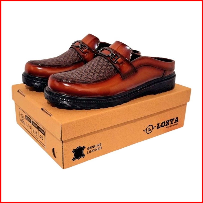 Lozta Sepatu Sandal Slop Bustong Pria Kulit Mengkilap Tutong Selop Vantablack 01 Series