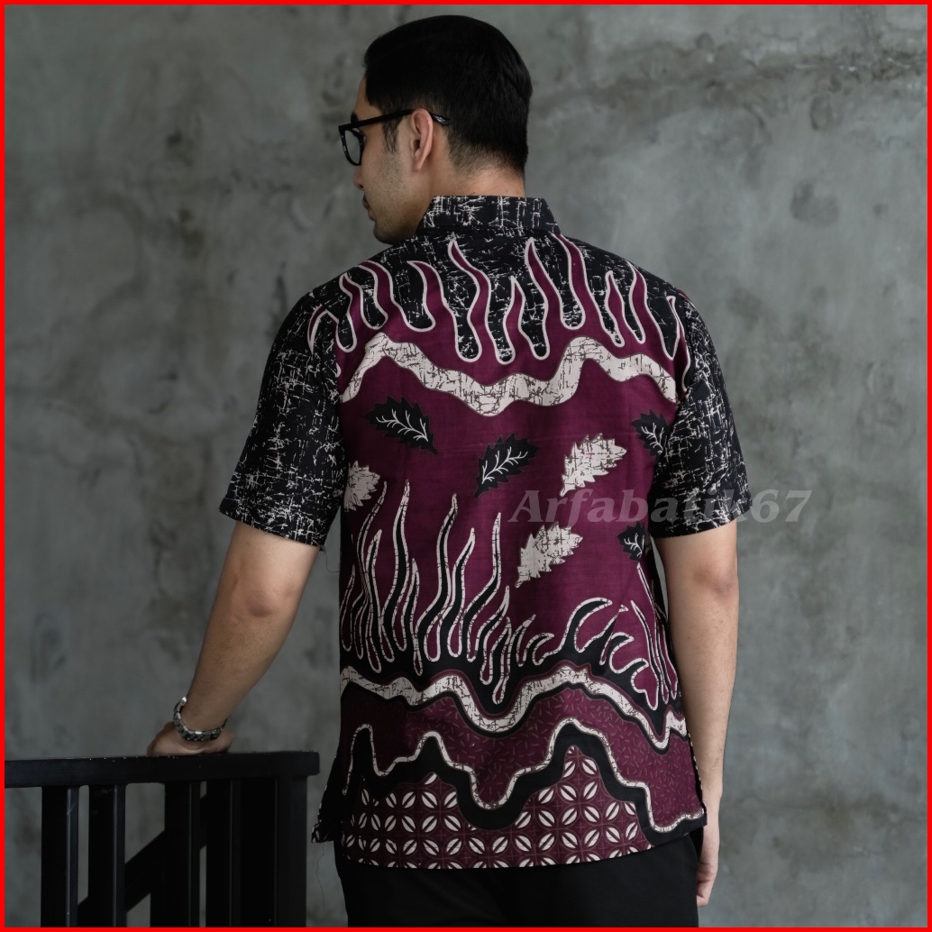 Baju Batik Pria Tangan Pendek Katun Prima Premium Lapis Furing Hero By Arfabatik67 Motif Kastara Burgundy