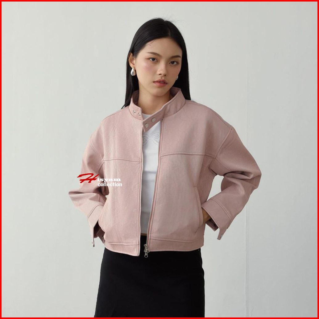 Jacket Crop Color Pink Jaket Zipper