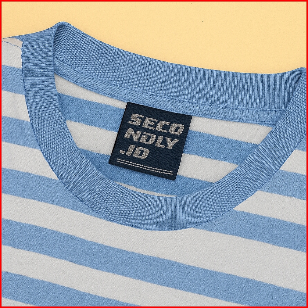 Secondly.id Tshirt Tiny Stripe Bluesky - Kaos Salur Jumbo Lengan Pendek Cotton 24s