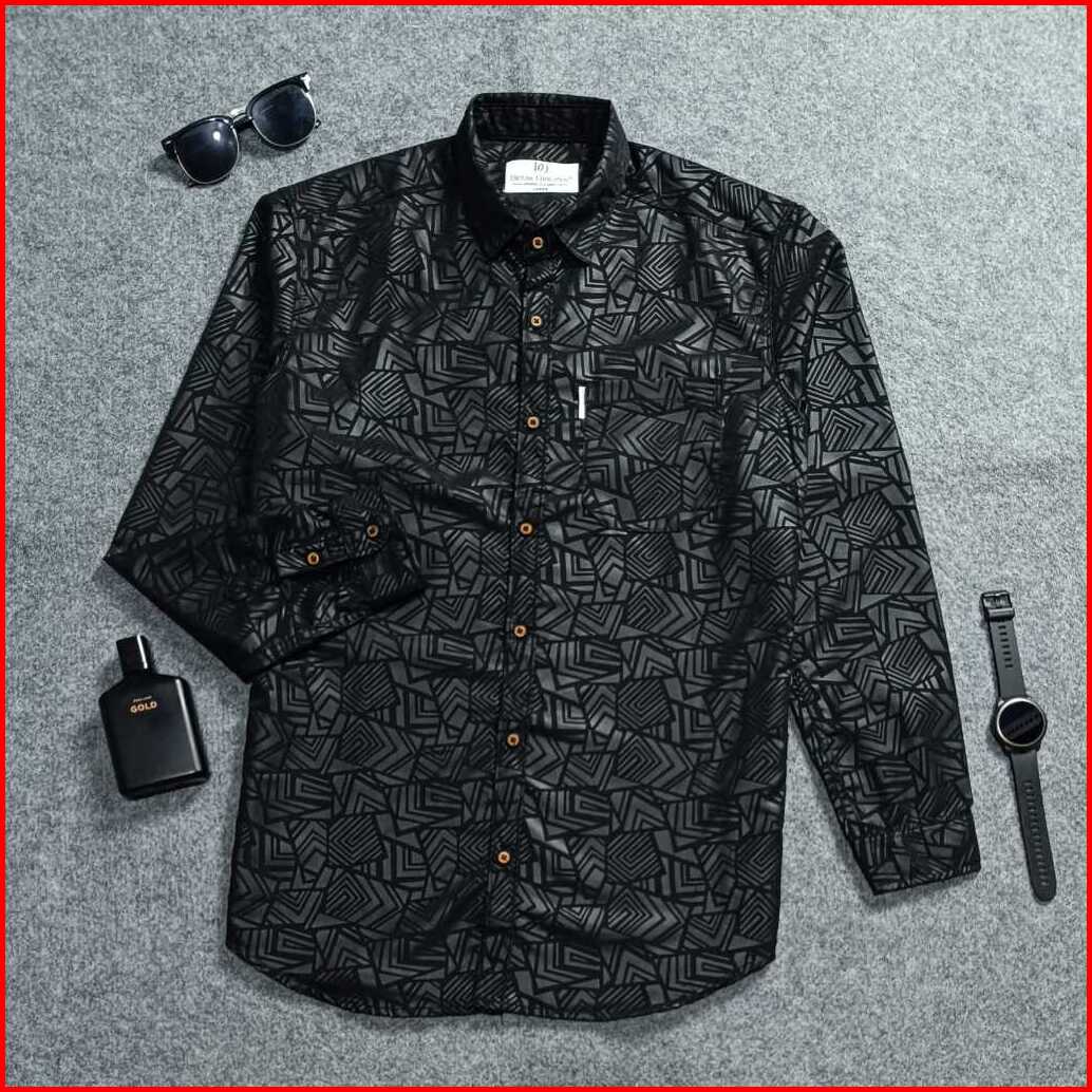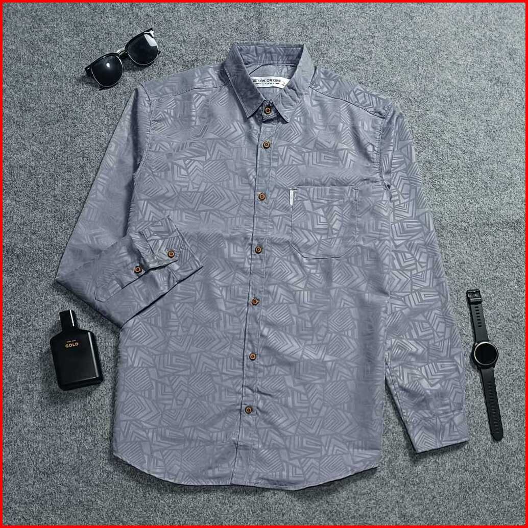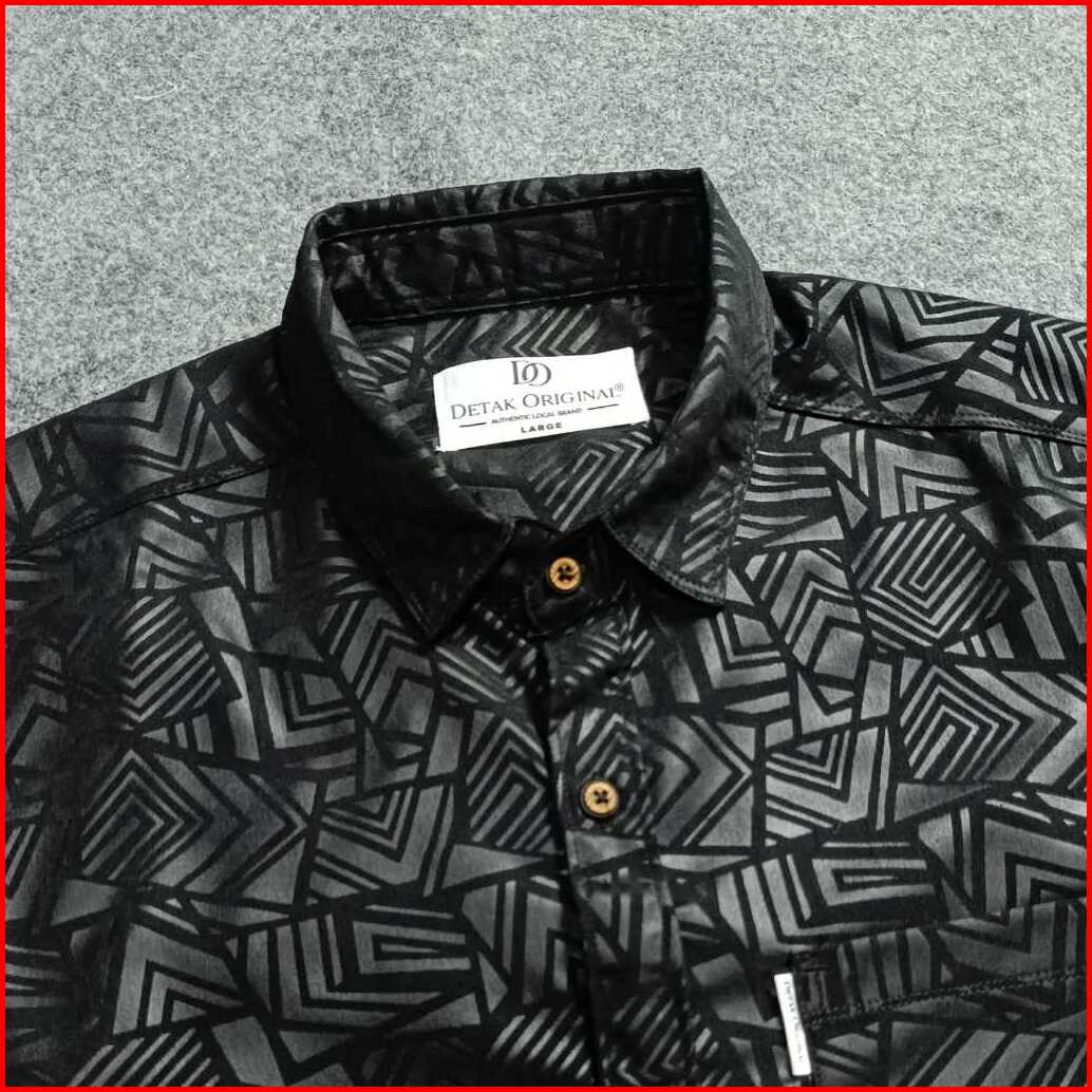 Kemeja Sultan Embos Pria Lengan Panjang Motif Etnik Hitam Casual Slim-fit