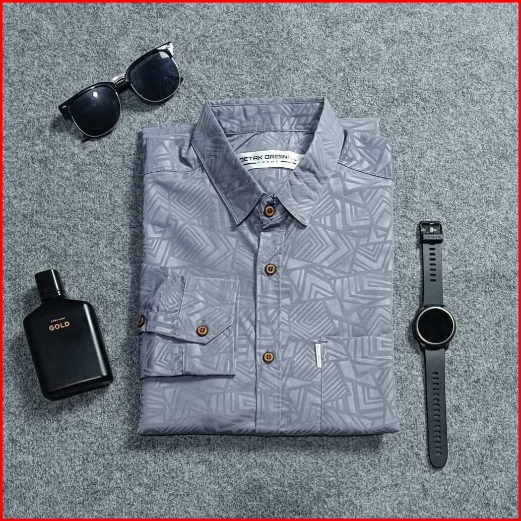 Detak Original Kemeja Embos Sultan Lengan Panjang Pria Grey Etnik Casual Slimfit