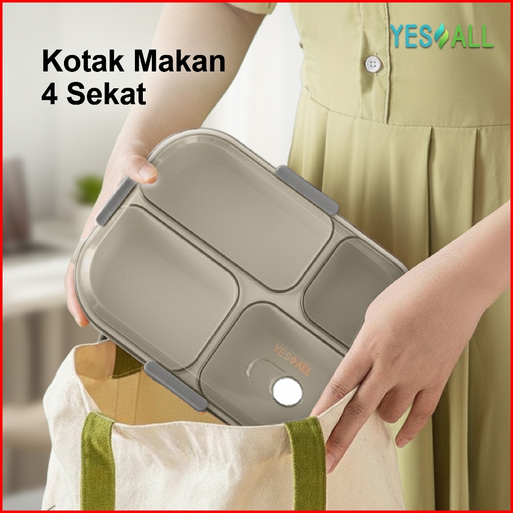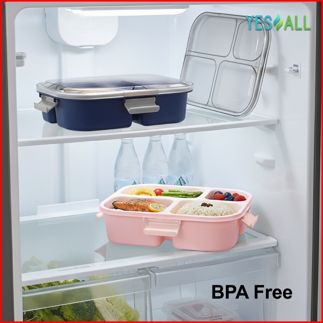 Yesall Lunch Box 1200ml Kotak Makan Bento 4 Sekat Estetik Korea Anti Bocor Sehat Tempat Bekal Makanan Ocean Blue Latte B