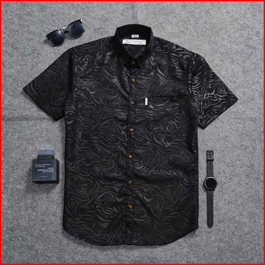 Detak Original Kemeja Embos Sultan Pria Lengan Pendek Motif Yakuza Kasual Slim-fit