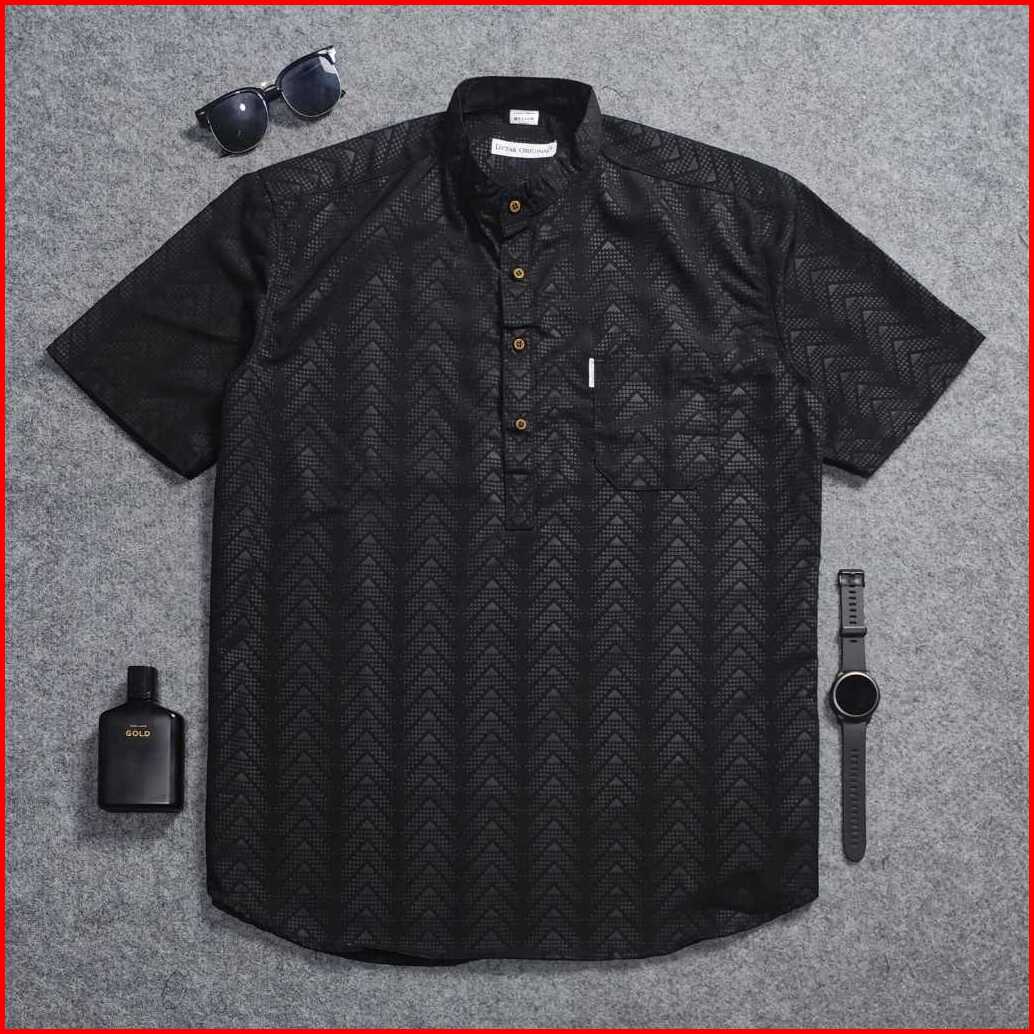 Detak Original Koko Kurta Embos Sultan Pria Lengan Pendek Motif Piramid Kasual Silm-fit