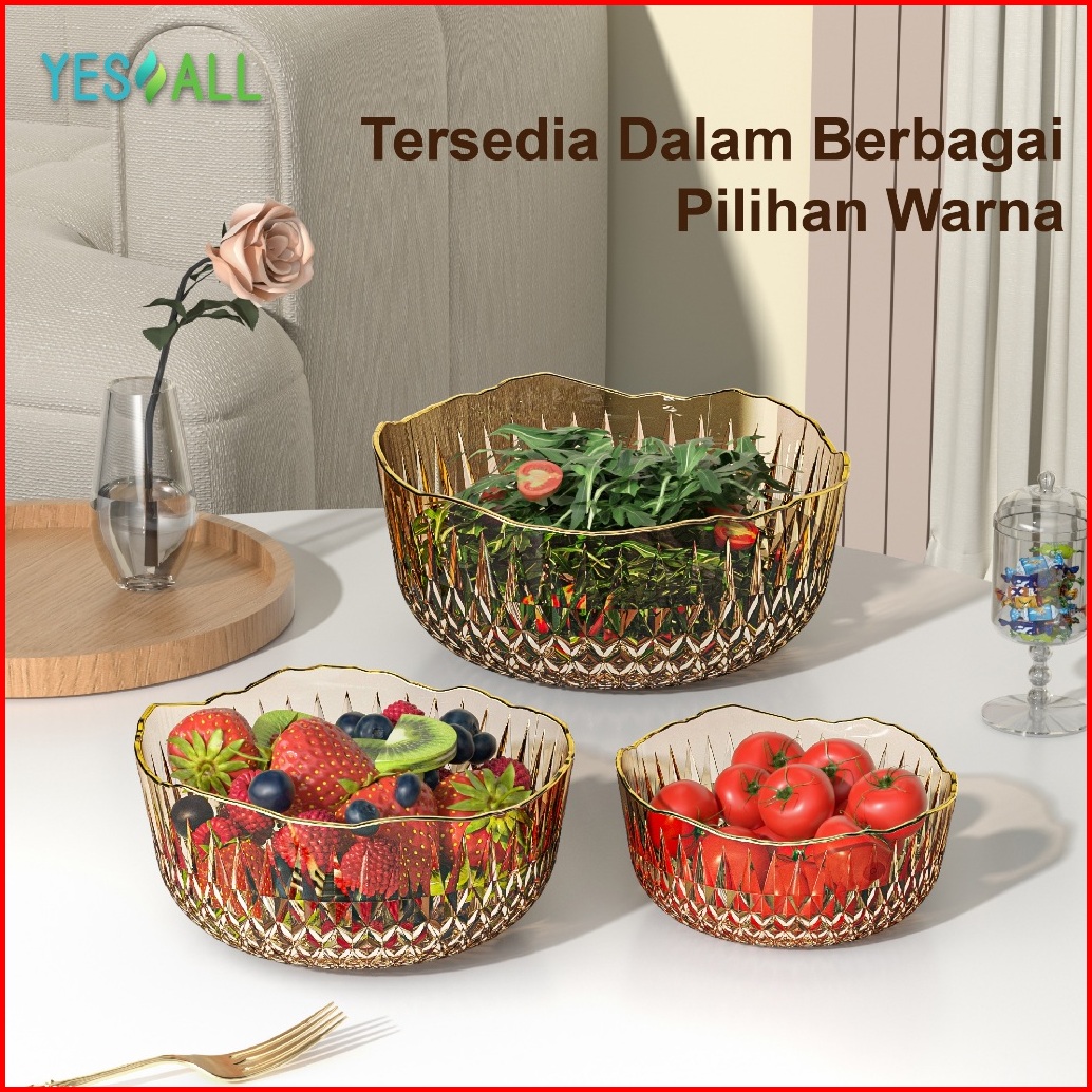 Yesall Mangkok Diamond Motif Ombak Transparan Aesthetic - Transparan Bowl List Transparent Mangkuk Salad Sayur List Mang