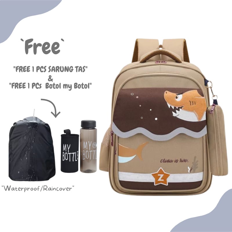 Tas Ransel Anak Raja Sekolah Lakilaki Perempuan SD TK SMP Motif Kartun Hiu