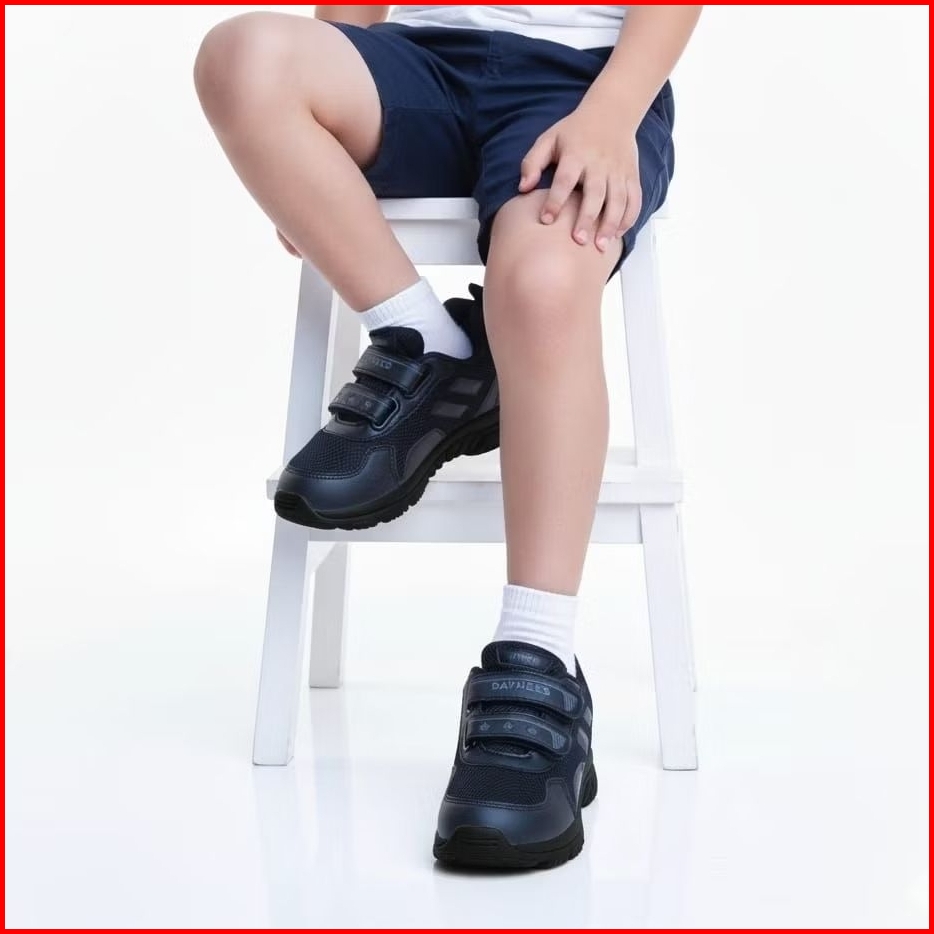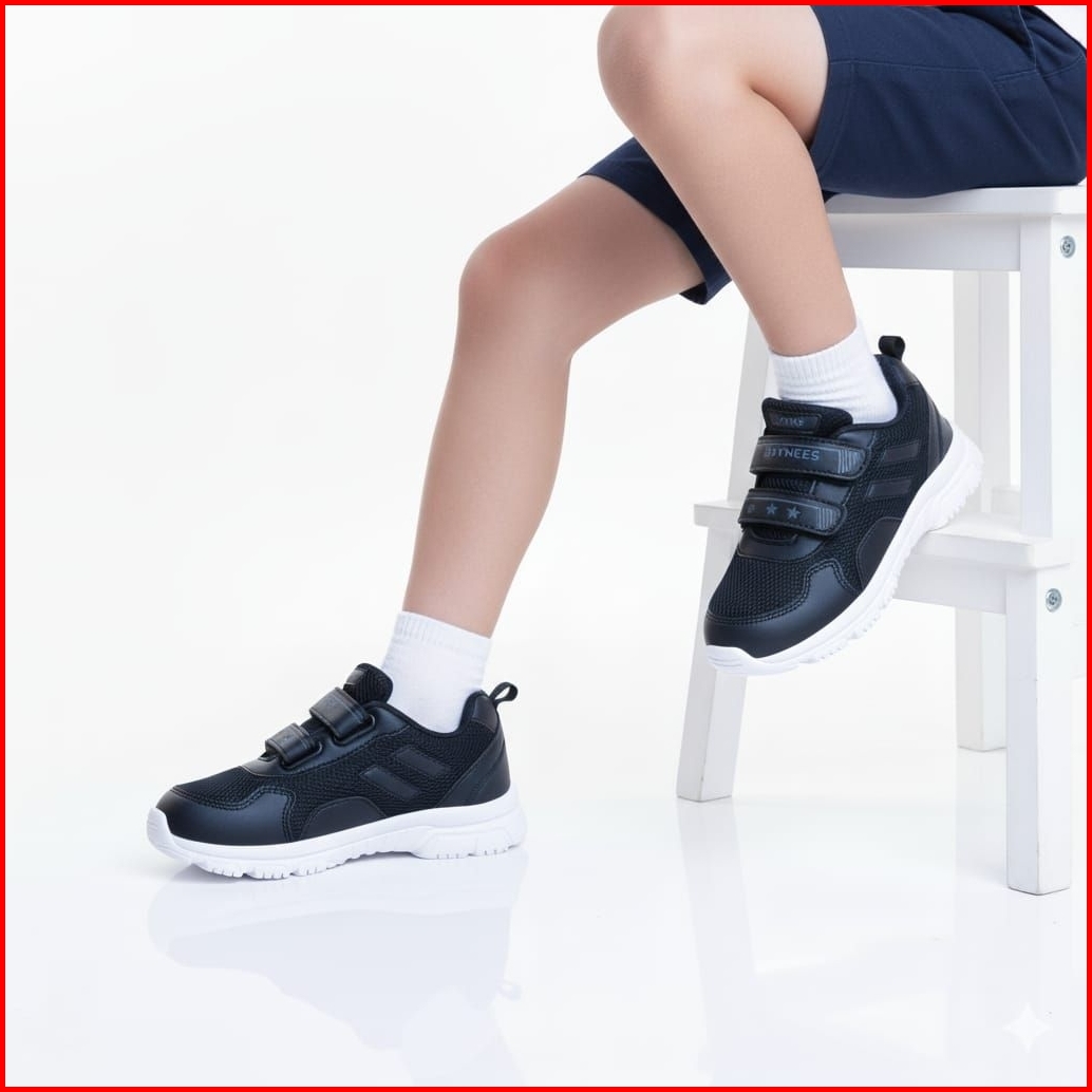 Lozta Sepatu Perekat Anak Sneaker Sekolah Blackwhite Inject Series