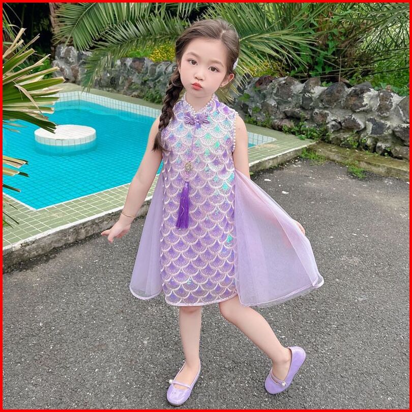 Baju Gaun Pesta Anak Perempuan Dress Baju Choengsam Qibao Model Mermaid Ariel Pesta Ulang Tahun Kondangan Korea Style Ke