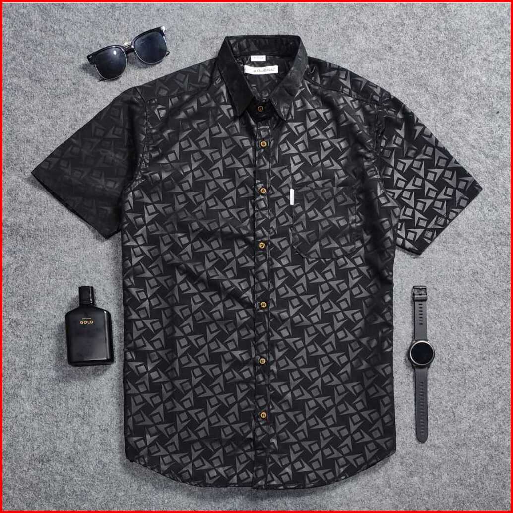 Detak Original Kemeja Embos Sultan Pria Lengan Pendek Motif Kunai Kasual Slim-fit