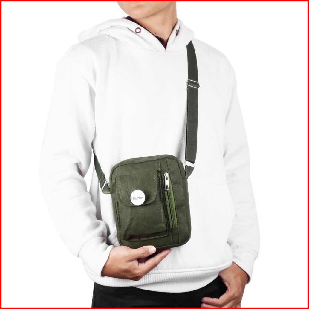 Pushop - Slingbag Kanvas Danzo Tas Selempang - Free Pin